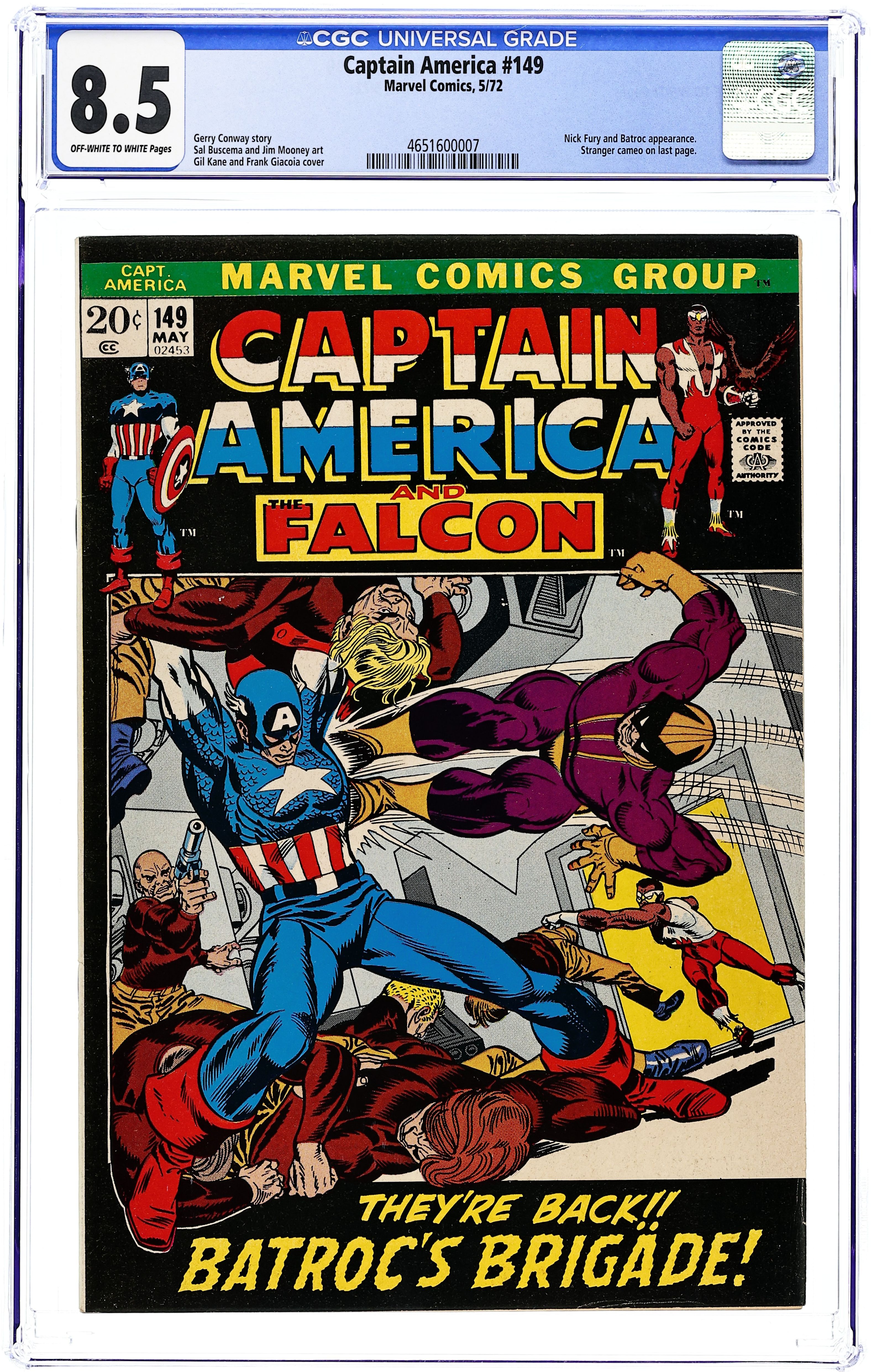"All the Colors of Evil" Part 1 of 2. Script by Gerry Conway. Pencils by Sal Buscema. Inks by Jim Mooney. Cover by Gil Kane and Frank Giacoia. Children are missing from the streets of New York City! And nobody knows where they are! After discussing the crisis, Captain America and the Falcondecide to work the case separately. So the Falcon investigates a lead in Harlem, while Cap follows a lead in the Theater District. Thankfully, the Falcon finds one of the missing kids! But the shield-slinger finds Batrocthe Leaper and his brigade! When did the French mercenary get into the kidnapping business? Something about this caper seems very, very strange. Cameo appearances by Nick Fury, Sharon Carter, Contessa Valentina Allegra de la Fontaine, Brian Muldoon, and Leila Taylor. (Note: The letters page includes a statement of ownership: average print run 359,217; average paid circulation 209,315.) 36 pages. Cover price $0.20.