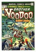 $14.25Cover pencils by Gil Kane, inks by Frank Giacoia. "Fiend in the Fog," script by Len Wein, pencils by Gene Colan, inks by Dick Giordano; Outside his home in New Orleans, Brother Voodoo spots a young girl being swept away in the Mississippi River; Diving into the water, Voodoo manages to save the girl and bring her back to his home; There he learns that she is Loralee Tate, daughter of Samuel Tate the local chief of police; She tells Brother Voodoo that she has been stalked by a group called the Cult of the Darklord. The reprint of an old weird story, "Voodoo," script by Carl Wessler, art by Gene Colan. 36 pgs., full color. Cover price $0.20.