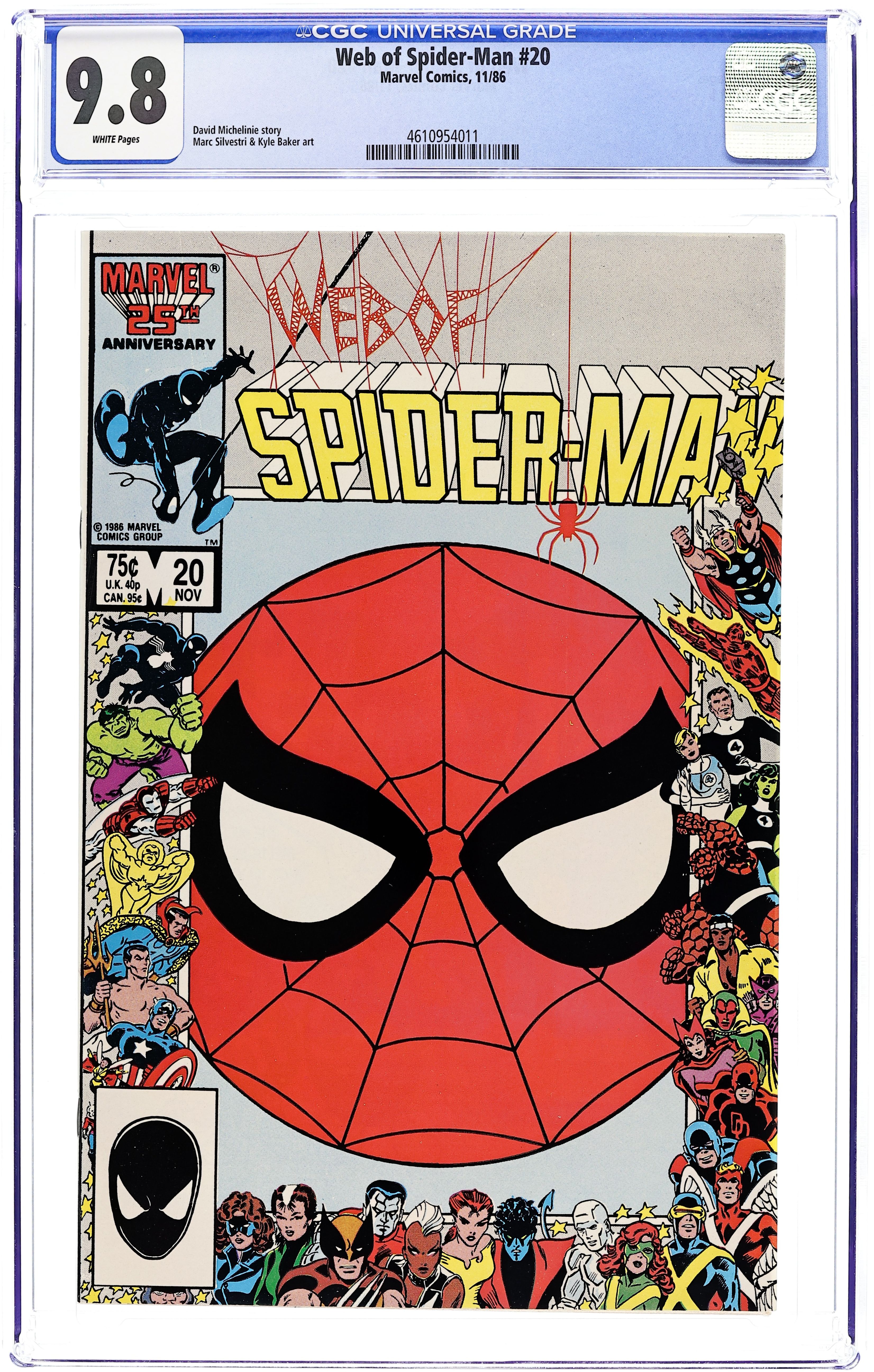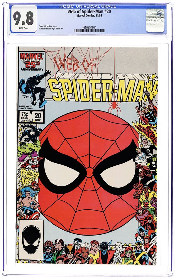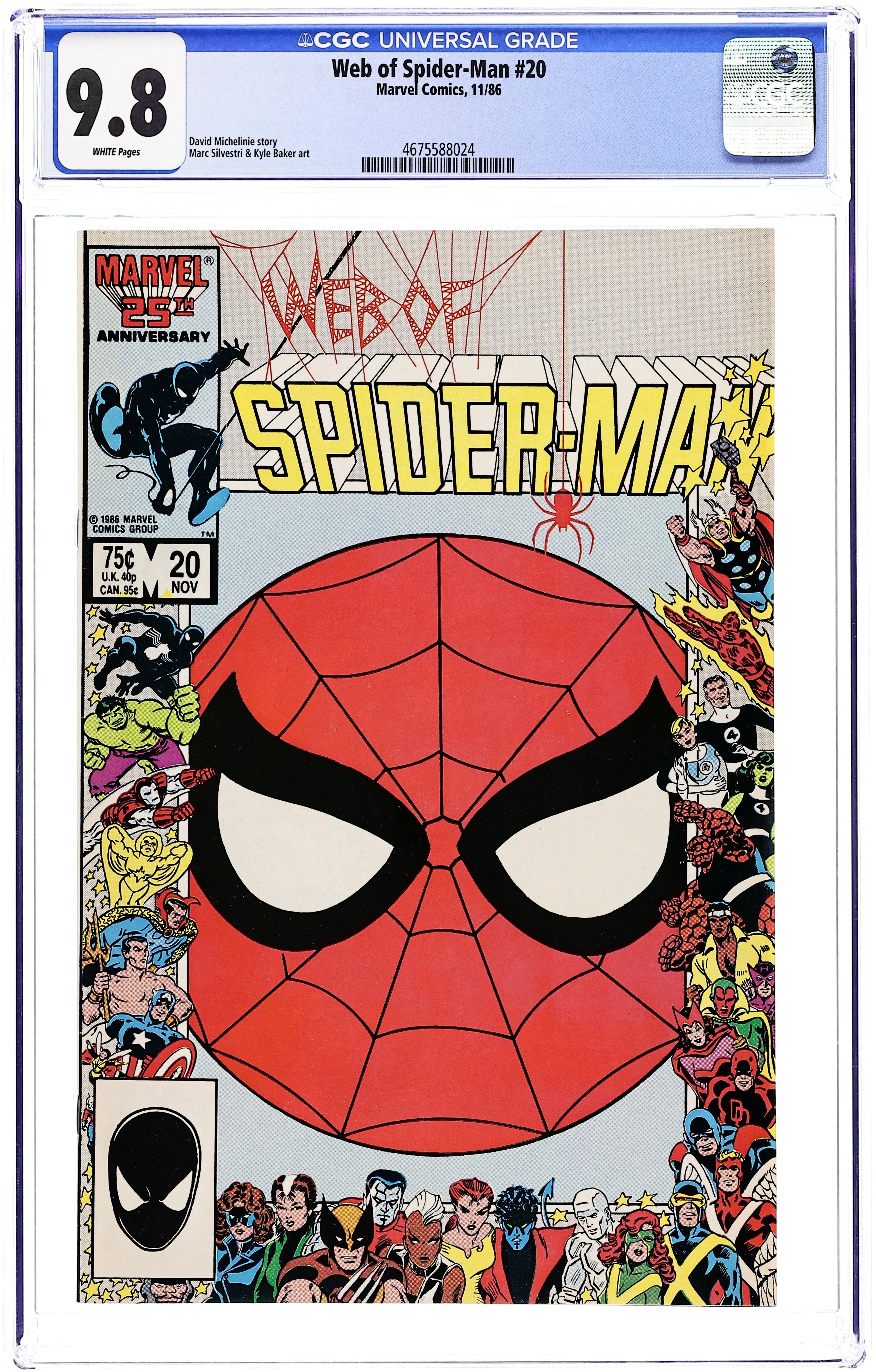 Direct Edition. "Little Wars!" Marvel 25th Anniversary Cover. Story by David Michelinie. Art by Marc Silvestri and Bob McLeod. Peter Parker and Joy Mercado arrive at London's Heathrow Airport just in time for a terrorist attack! After stopping the airport attack, Spider-Man must next prevent the assassination of the British prime minister. Cover price $0.75.