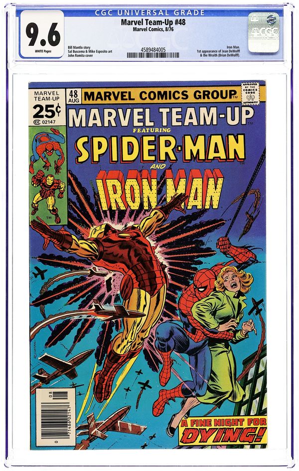 "A Fine Night for Dying!" Part 1 of 4. Guest-starring Spider-Man and Iron Man. Script by Bill Mantlo. Art by Sal Buscema (breakdowns), Mike Esposito (finishes), and Dave Hunt (backgrounds). Cover by John Romita. A massive fuel tank at Stark International Long Island explodes! And your friendly neighborhood Spider-Man is caught in the blast! But fortunately a certain golden avenger is nearby to catch the falling web-slinger! After Shell-head and the wall-crawler compare notes with police captain Jean DeWolff, they realize a serial bomber is on the loose in New York City! Where will he or she strike next? How about at the 37th precinct headquarters! But the mysterious villain can't fool the web-slinger's uncanny spider sense! And shortly thereafter the battle is joined: the Amazing Spider-Man and the Invincible Iron Man vs. the Wraith! First appearances of Captain Jean DeWolff and the Wraith. Last 25¢ issue. (Notes: This issue includes a full-page ad for Hostess Twinkies featuring Captain America vs. the Red Skull and the cosmic cube. A 30-cent cover price variant exists for this issue) 36 pages. Cover price $0.25.