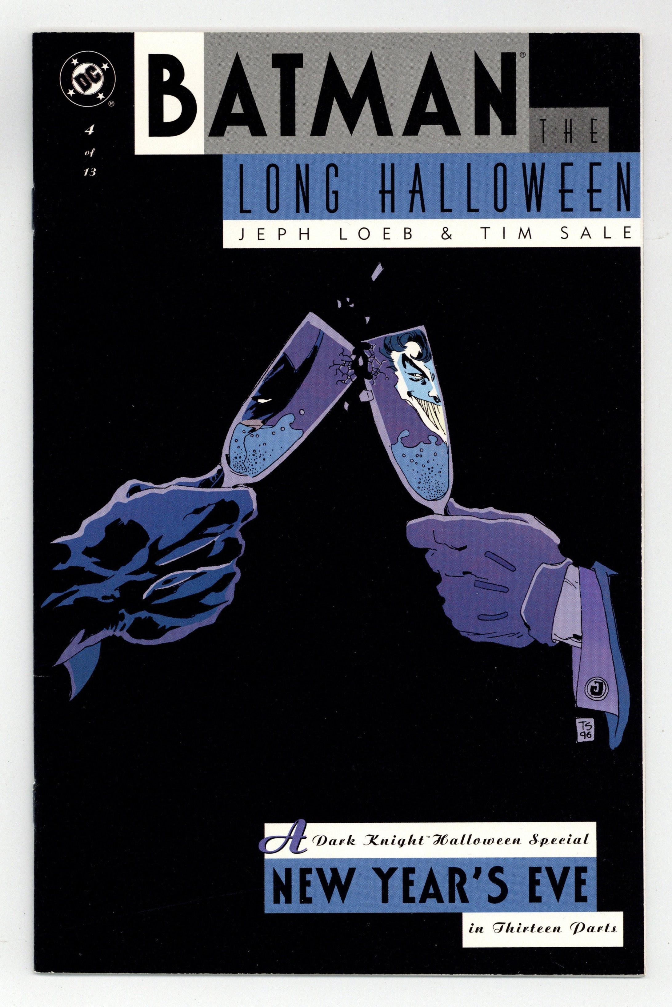 Tags: Batman$18.00"New Year's Eve." Batman tries to thwart The Joker's plan to fumigate New Year's Eve partiers with deadly gas. Clues are uncovered that suggest that Harvey Dent might be Holiday. Script by Jeph Loeb, art and cover by Tim Sale. Cover price $2.95.