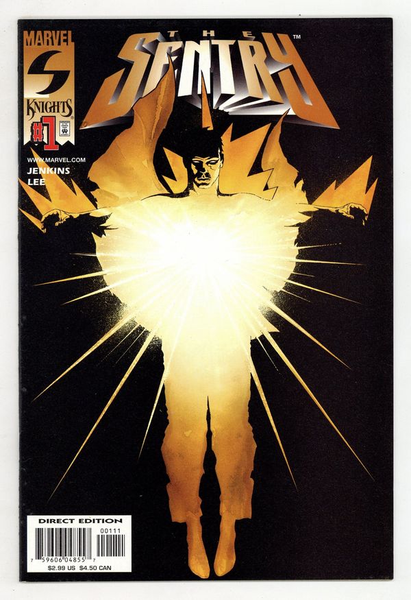 $110.001st appearance of Sentry. cover by Jae Lee. Paul Jenkins/Jae Lee. THE SCOOP: In 1961, Stan Lee introduced the Fantastic Four. One week earlier he invented something else! Find out what as Paul Jenkins and Jae Lee (the same creative team that brought you the Eisner-award-winning INHUMANS limited series) reunite to tell a new adventure! THE STORY: In an amazing twist of fate, Marvel Comics and the Marvel Knights have unearthed what could be the most shattering conspiracy perpetrated on the comic book community! Our creative founding fathers introduced us to a pantheon of characters rivaled only by those of Greek mythology itself. One week prior to that, Stan?along with artist Artie Rosen?launched what should have been Marvel's flagship title. A title that contained within its four-color pages a being so powerful and so full of beauty and grace that it somehow didn't fit in the Marvel Universe as we know it. Somehow, somewhere, we were all forced to forget?made to simply pretend the title never existed. What was it about this god amongst human heroes that set these events in motion? What was it about this character that threatened the very fabric of the Marvel Universe? Find out in the new limited series that will uncover the life of this long-lost character, guest-stars our greatest heroes, and takes you on a journey of dark mysteries, heart-wrenching realization and ultimate heroism! THE CREATORS: Bringing you this tale of discovery is the award-winning INHUMANS creative team of writer Paul Jenkins and artist Jae Lee. With several years of research?and the help of the legendary Stan "The Man" Lee himself?Jenkins and Lee will uncover the truth... and attempt to preserve our very existence! THE FORMAT: Each issue of this five-part limited series will be 32 pages, with ads. Cover price $2.99.