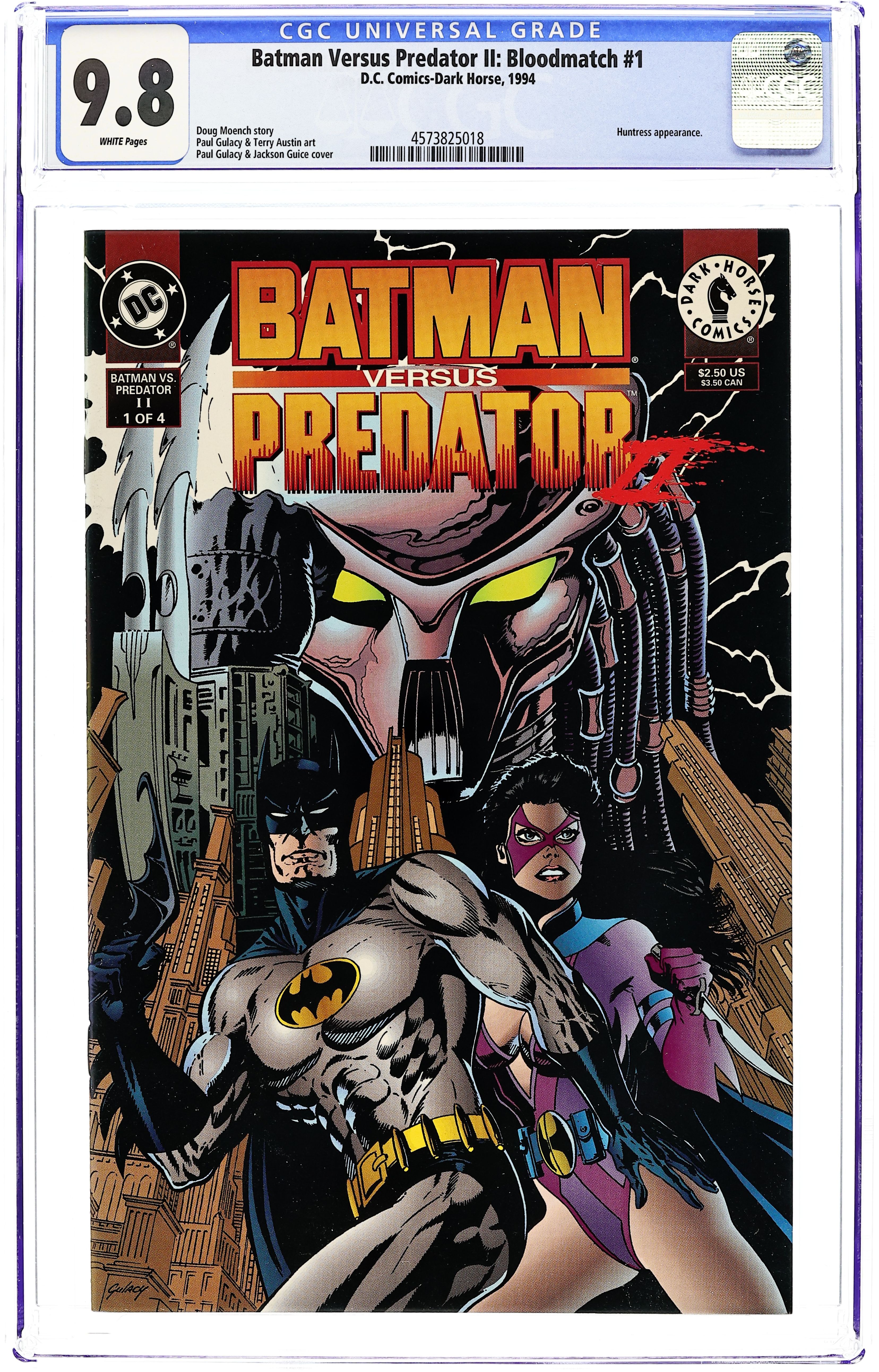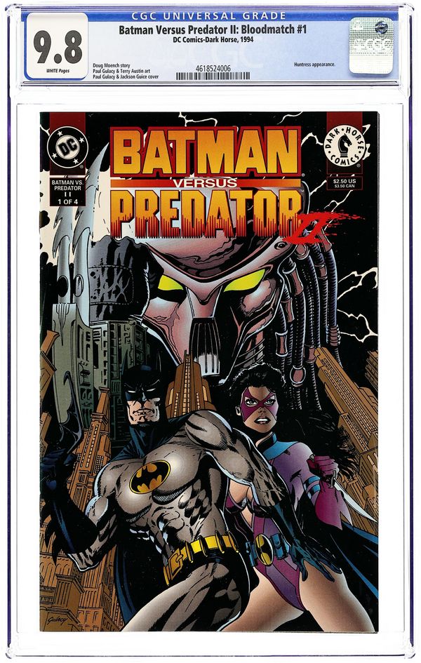 Months ago, Batman narrowly defeated an alien hunter that terrorized Gotham City. In return, the creature's species vowed never again to use the Dark Knight's city as its hunting grounds...but a reckless young Predator with dreams of glory has chosen to break that vow and renews the hunt, seeking to overthrow the upstart human 'Champion.' While Batman is stalked by the Predator, hired assassins of a Gotham crimelord are also after the Dark Knight. Into this deadly game is drawn the Huntress and a duo of Predators seeking to salvage their race's honor by stopping the young rogue. Written by Doug Moench, with art by Paul Gulacy and Terry Austin. Deluxe Format. Cover price $2.50.