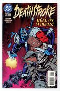 Tags: Deathstroke$3.90"Siege of the Hellriders!" Guest-starring Vigilance. Story by Marv Wolfman. Art by Mike Huddleson and Curt Shoultz. While on assignment Deathstroke and Vigilance soon learn that discussing their relationship in the middle of a job can have deadly consequences. Cover price $2.25.