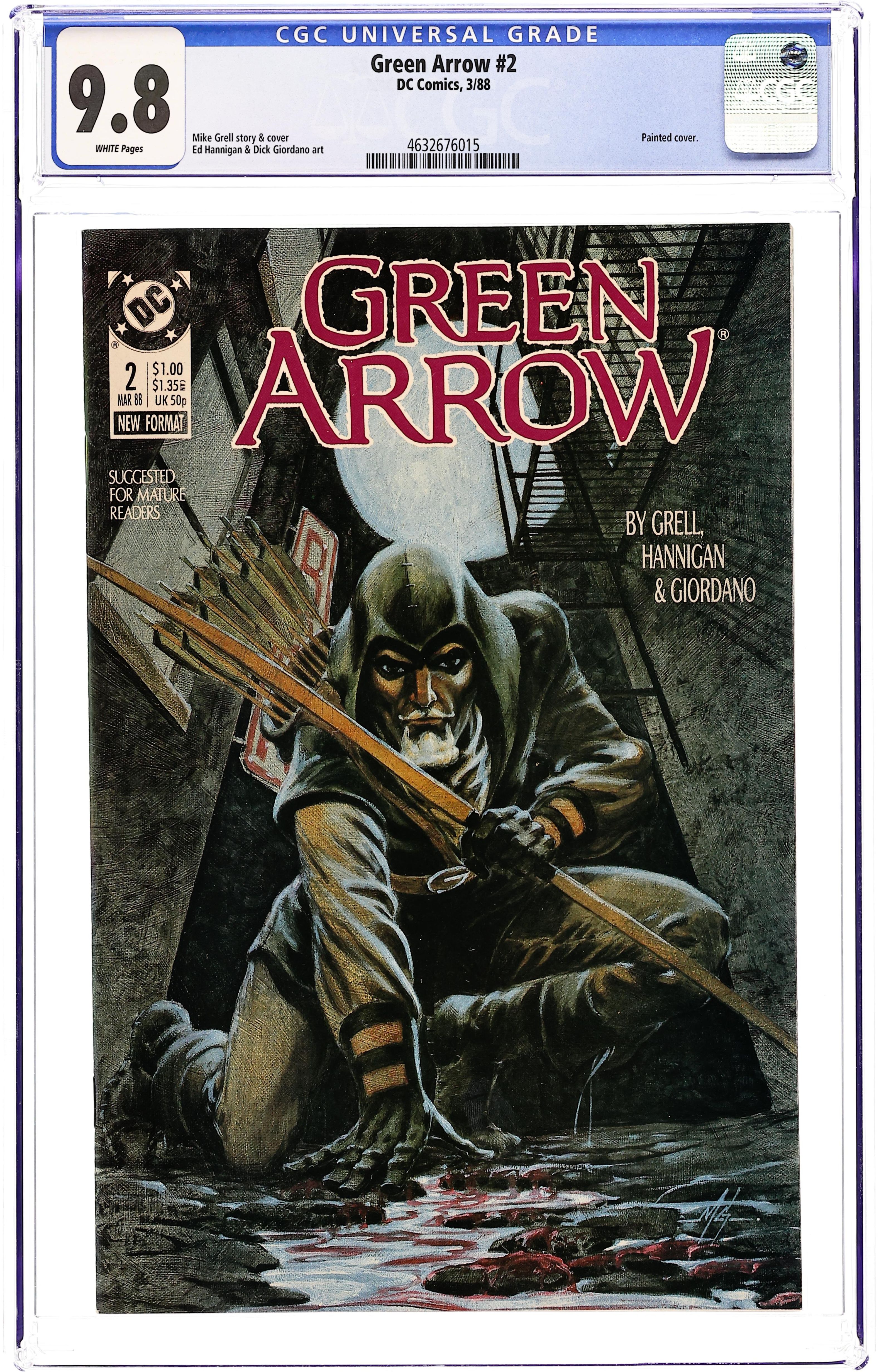 Cover art by Mike Grell. Hunters Moon [Part 2] starring Green Arrow, script by Mike Grell, pencils by Ed Hannigan, inks by Dick Giordano and Frank McLaughlin; GA is out to stop a former child killer before he can claim his next victim. Suggested for Mature Readers. 36 pgs. $1.00. Cover price $1.00.