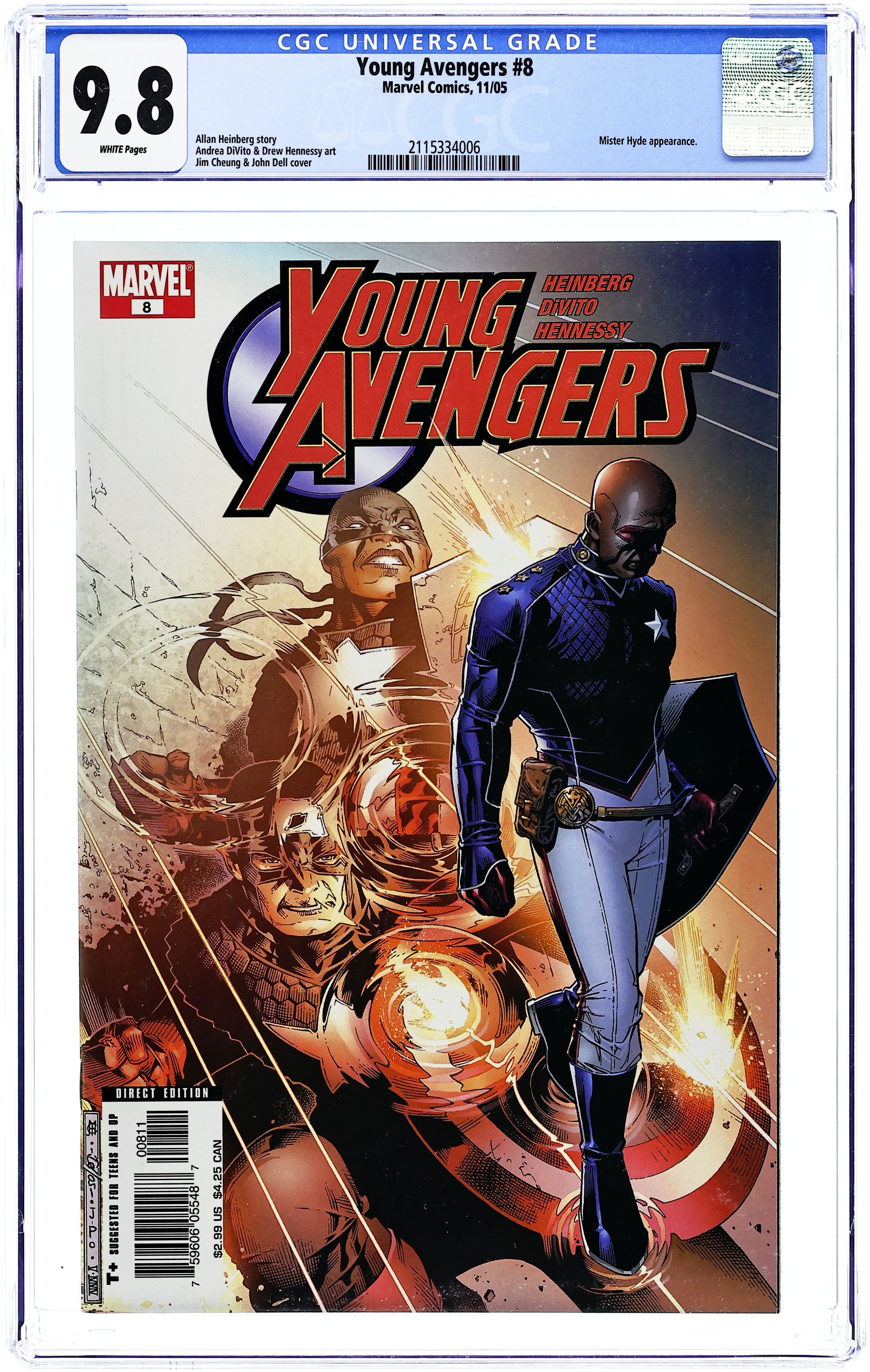 Written by Allan Heinberg Penciled by Andrea DiVito Cover by Jim Cheung. The secrets are OUT when Captain America and Jessica Jones confront the Young Avengers' parents about their children's double lives. Meanwhile, the unsuspecting kids find themselves on the front lines of a savage drug war against one of the Marvel Universe's most powerful, chemically-enhanced antagonists. Even if they survive, who's going to save them from their parents? Cover price $2.99.
