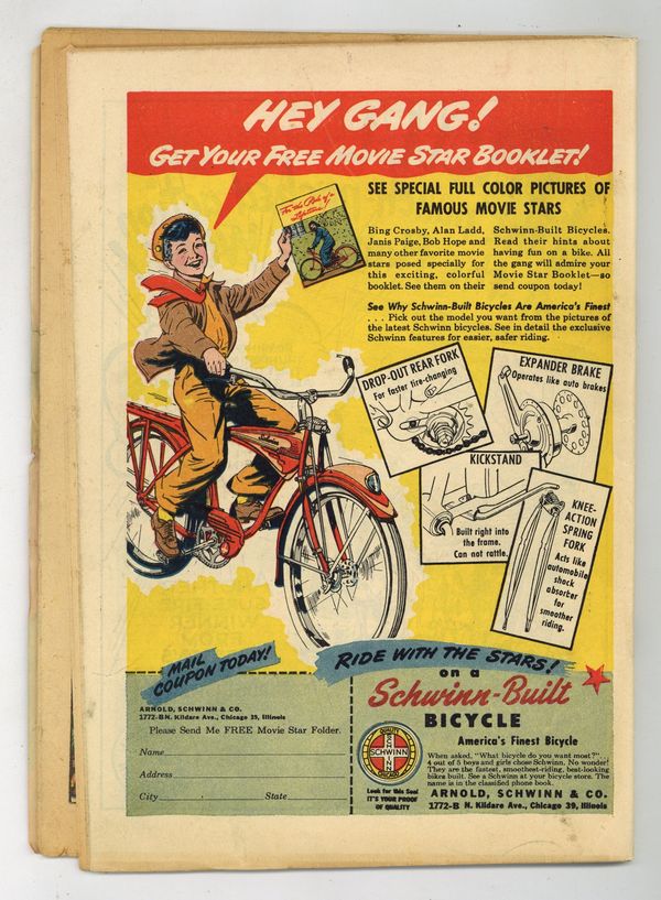 Tags: Batman$355.00Cover by Win Mortimer. Stories by Bill Finger, Otto Binder and unknown. Art by Dick Sprang, Charles Paris, Jimmy Thompson, Howard Sherman, Curt Swan and Steve Brodie. When a brazen crime involving the theft of jade rocks Chinatown, Batman teams up with a Chinese detective to track down the criminals. Don't miss Batman and Robin in "The Crimes of Jade!" by Bill Finger, Dick Sprang and Charles Paris. Plus: Robotman in "A Bid for Robotman?" by Otto Binder and Jimmy Thompson; Slam Bradley in "Shorty Rides a Winner!" with art by Howard Sherman; and The Boy Commandos in "Dr. Z, Future Criminal!" with art by Curt Swan and Steve Brodie. Also: Shorty 2-pager by Henry Boltinoff; Ozzie 1-pager by Phil Berube; 2-page text piece "Secret Codes -- A Hobby for All"; and 1-page story "Arizona Ranger." 52 pages, full color. Cover price $0.10.