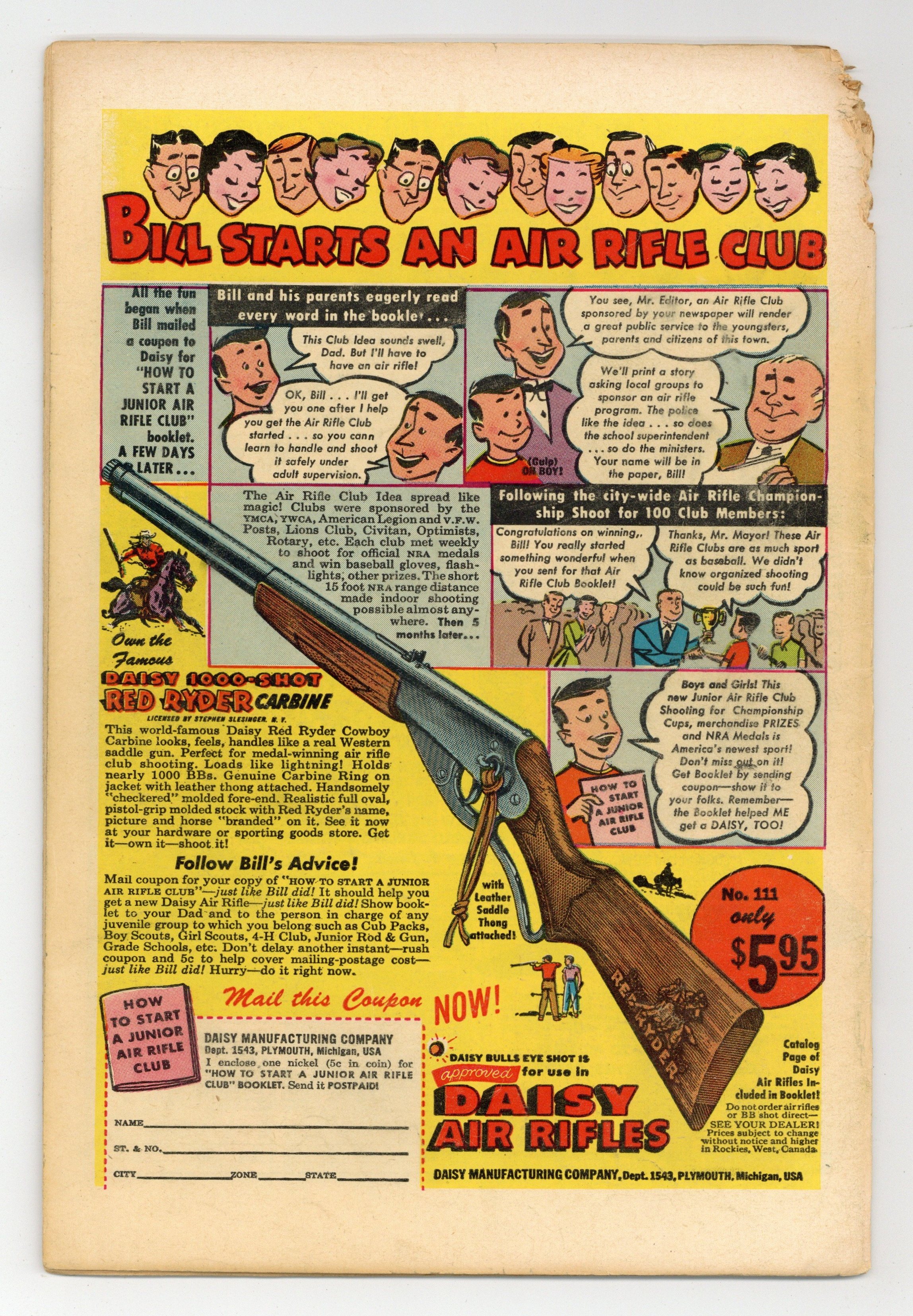 Cover by Win Mortimer. Stories by Bill Woolfolk, Carmine Infantino, Jack Miller and unknown. Art by Bob Kane, Charles Paris, Sid Check, Moe Worthman, Leonard Starr, Howard Sherman and unknown. Don't miss Batman and Robin in "The Stolen Bank" by Bill Woolfolk, Bob Kane and Charles Paris. Plus: Pow-Wow Smith, Indian Lawman in "Return of the Killers!" with art by Leonard Starr; Robotman in "The Crime Collector" by Carmine Infantino, Jack Miller, Sid Check and Moe Worthman; and Impossible -- But True! tale "The Man in Ice!" (featuring Roy Raymond) with inks by Howard Sherman. Also: Quick Quiz activity half-pager by H.T. Elmo; Casey the Cop 1-pager by Henry Boltinoff; Jerry the Jitterbug 2-pager by Boltinoff; and 2-page text piece "Extinguishing the Firebugs" by Jack Miller (as John Marlowe). And: Superman says "People Are People!" in a 1-page public service announcement by Jack Schiff and Win Mortimer. 44 pages, full color. Cover price $0.10.