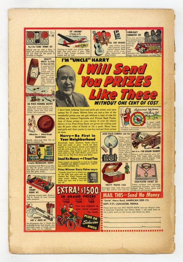 Joker cover art by Win Mortimer. The Mental Giant of Gotham City starring Batman and Robin, script by Edmond Hamilton, pencils by Dick Sprang, inks by Charles Paris. Casey the Cop humor page by Henry Boltinoff. Your United Nations at Work public service announcement, script by Jack Schiff, art by Win Mortimer. The World's Sea Fair! starring Captain Compass, script by Otto Binder, art by Joe Certa. Batman Whirly-Word Game activity page. Laundry-Mark Sleuth text article. The Unlucky Guest Stars! starring Roy Raymond TV Detective, art by Ruben Moreira. 36 pgs. $0.10. Cover price $0.10.