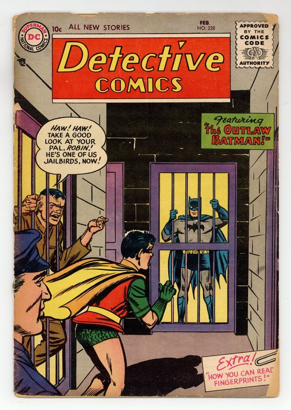 Cover art by Win Mortimer. The Outlaw Batman starring Batman and Robin, pencils by Bob Kane, inks by Charles Paris. Do You Know How to Be a Good Baby-Sitter? public service announcement starring Buzzy, script by Jack Schiff, art by Win Mortimer. The Machine That Captured the Past starring Roy Raymond TV Detective, art by Ruben Moreira. How to Read Fingerprints article by Jack Miller. Escape to the Stars starring John Jones Manhunter From Mars, script by Dave Wood, art by Joe Certa. 36 pgs. $0.10. Cover price $0.10.