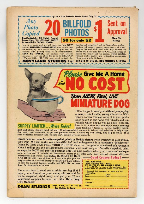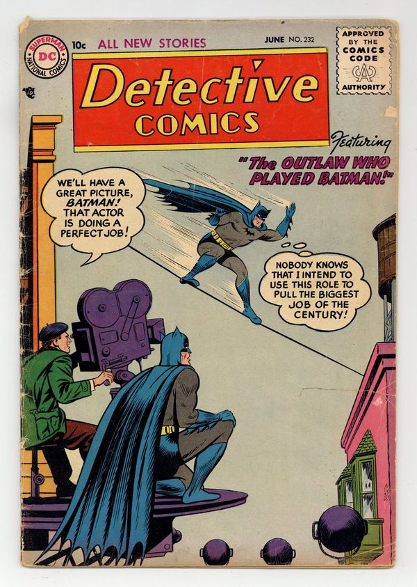 Cover art by Curt Swan and Stan Kaye. The Outlaw Who Played Batman starring Batman with Robin, pencils by Dick Sprang. The Man Who Could Eat Metal starring Roy Raymond TV Detective, art by Ruben Moreira. Casey the Cop humor page by Henry Boltinoff. The Dog with A Martian Master starring John Jones Manhunter from Mars, art by Joe Certa. 36 pgs. $0.10. Cover price $0.10.