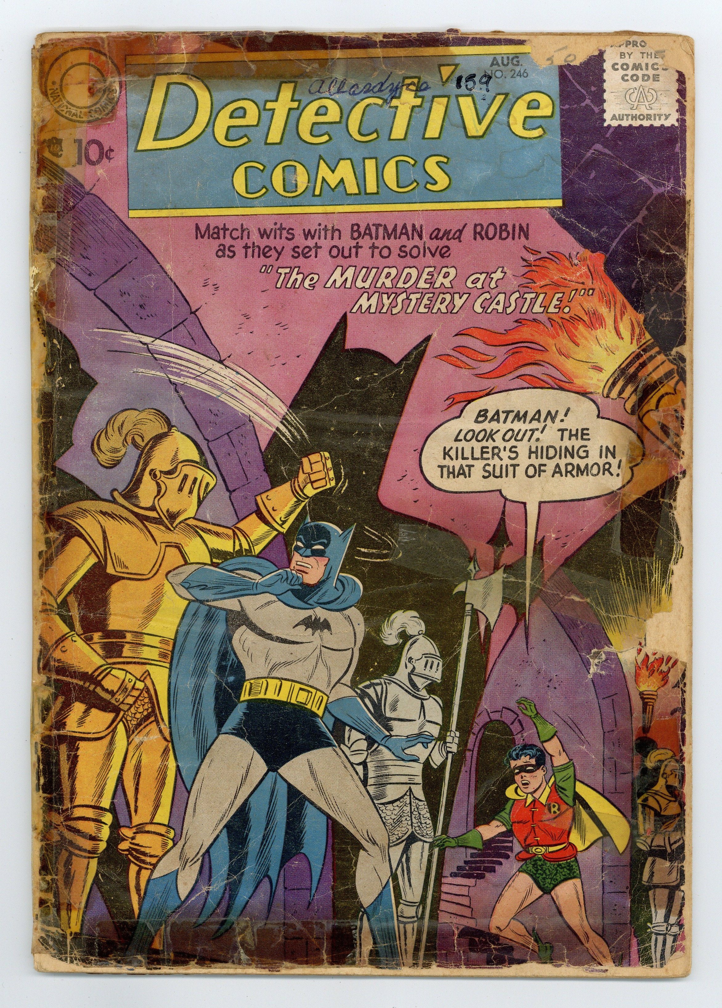 Cover art by Sheldon Moldoff. Murder at Mystery Castle starring Batman and Robin, script by Bill Finger, pencils by Sheldon Moldoff, inks by Charles Paris. Earn While You Learn! public service announcement, art by Ruben Moreira. Casey the Cop humor page by Henry Boltinoff. The Man With the Magic Camera starring Roy Raymond TV Detective, script by Jack Miller, art by Ruben Moreira. Warden Willis humor page by Henry Boltinoff. Introduction of Diane Meade in John Jones' Female Nemesis starring John Jones Manhunter from Mars, script by Jack Miller, art by Joe Certa. 36 pgs. $0.10. Cover price $0.10.