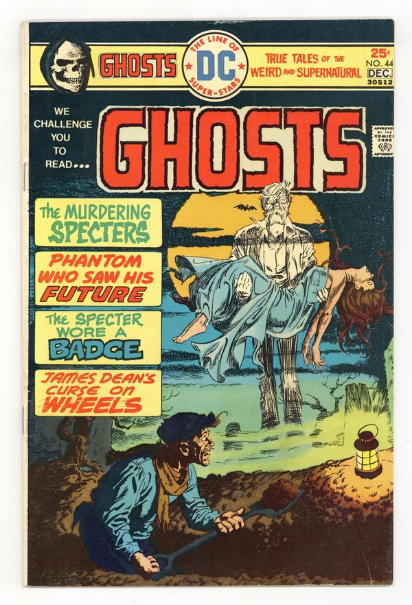 Cover by Luis Dominguez. Featuring: 6 page story "The Phantom Who Saw His Future" drawn by Noly Panaligan; 3 page story "The Specter Wore a Badge" written by Martin Pasko and drawn by Ruben Yandoc; 6 page story "The Case of the Murdering Specters" written by Carl Wessler and drawn by Lee Elias; 3 page story "James Dean's Curse on Wheels" drawn by John Calnan. Cover price $0.25.