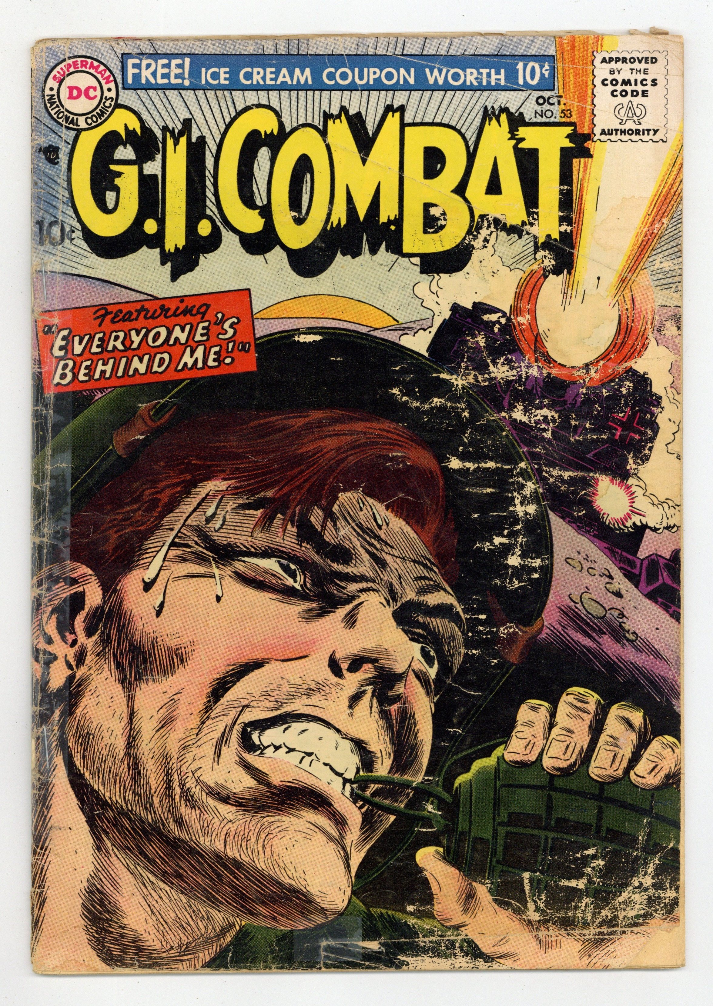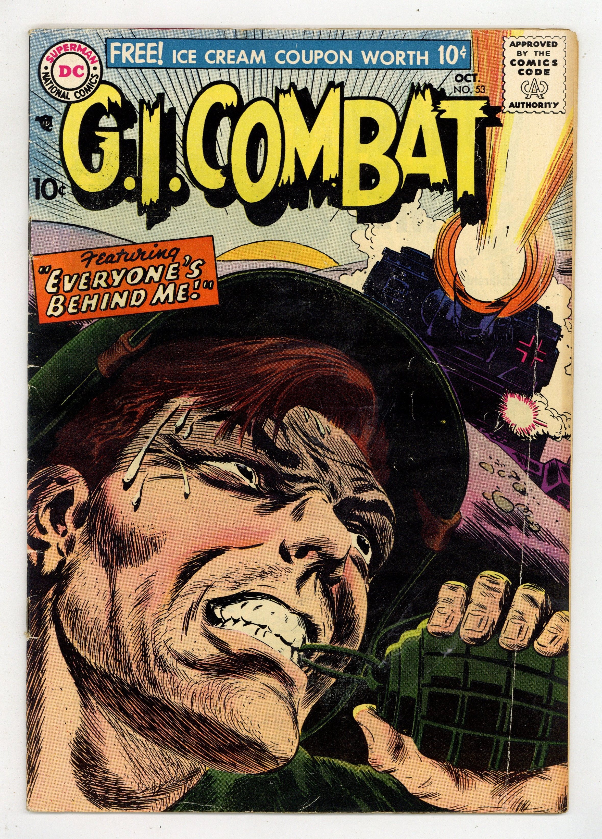 Cover by Jerry Grandenetti. Written by Ed Herron, Bill Finger and Robert Kanigher. Art by Joe Kubert, Jack Abel, Jerry Grandenetti, Carmine Infantino and Robert Stuart. In this issue: "The Paper Trap!" by Ed Herron and Joe Kubert; "Battle Pattern!" by Bill Finger and Jack Abel; "Infantry Town!" by Herron and Jerry Grandenetti; "Everyone's Behind Me!" by Robert Kanigher, Carmine Infantino and Robert Stuart; and 1-pager "Fighting Fifth Cavalry Regiment!" 36 Pages, Full Color. Cover price $0.10.