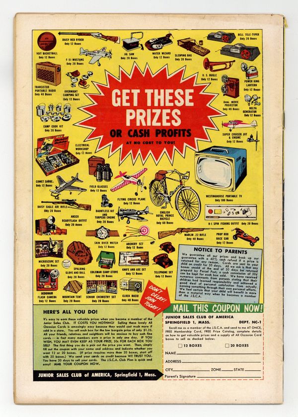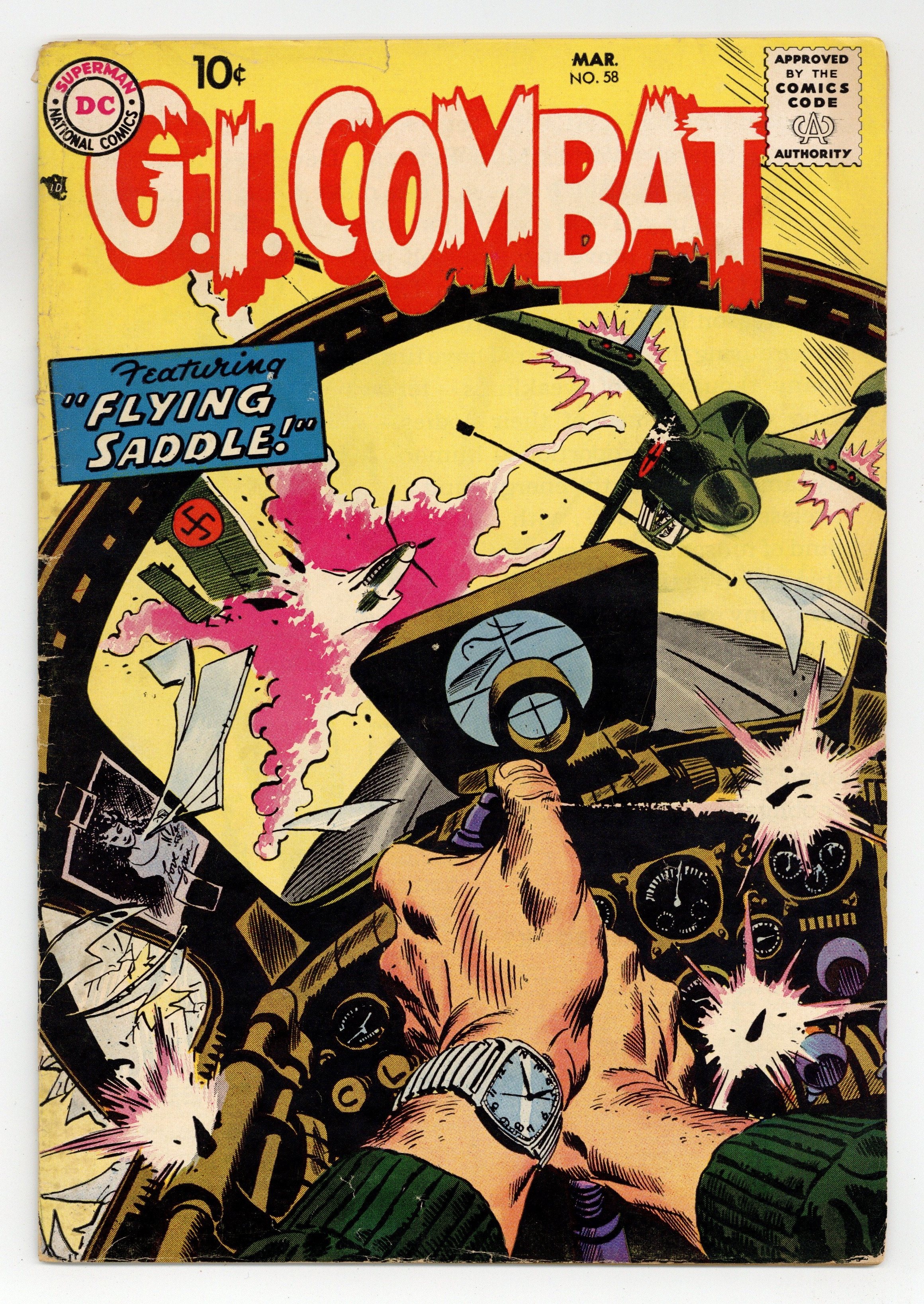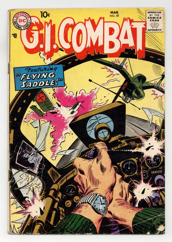 Cover by Joe Kubert. Written by Bob Haney and Bill Finger. Art by Irv Novick, Jerry Grandenetti, Ross Andru, Jack Abel, Robert Stuart and Mike Esposito. In this issue: "Flying Saddle" by Bob Haney and Irv Novick; "No Hill for Easy!" by Haney, Jerry Grandenetti and Robert Stuart; "The Last Man Out" by Bill Finger, Ross Andru and Mike Esposito; and "A Carrier Has Nine Lives!" by Haney and Jack Abel. 36 Pages, Full Color. Cover price $0.10.