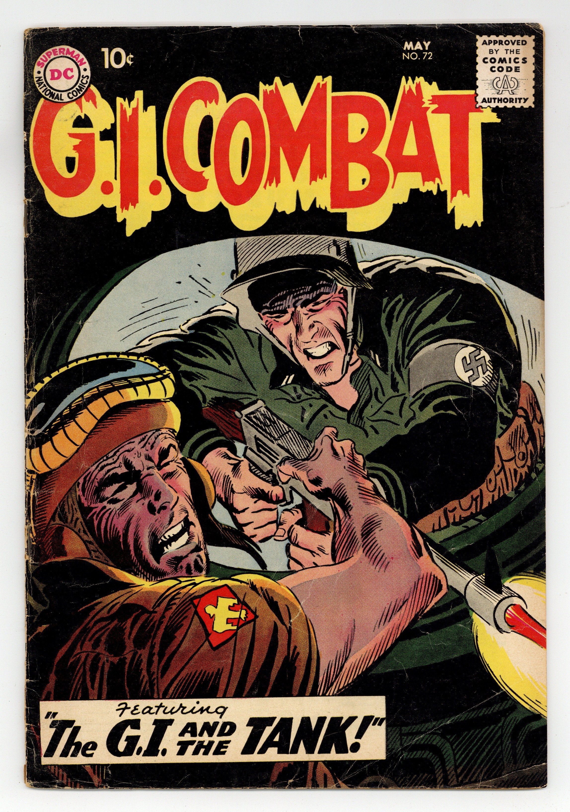 Cover by Joe Kubert. Written by Ed Herron and Bob Haney. Art by Russ Heath, Mort Drucker, Ross Andru and Mike Esposito. In this issue: "The G.I. and the Tank!" by Ed Herron and Russ Heath; three of the Navy's leading frogmen are called upon to perform a dangerous mission in "The Three Frogmen" by Bob Haney and Mort Drucker; and "Ground Fire" by Haney, Ross Andru and Mike Esposito. 36 Pages, Full Color. Cover price $0.10.
