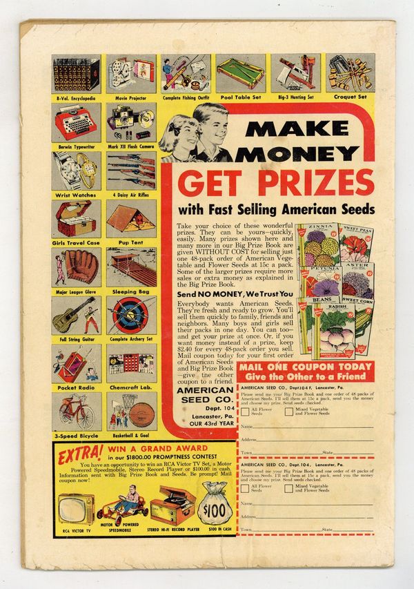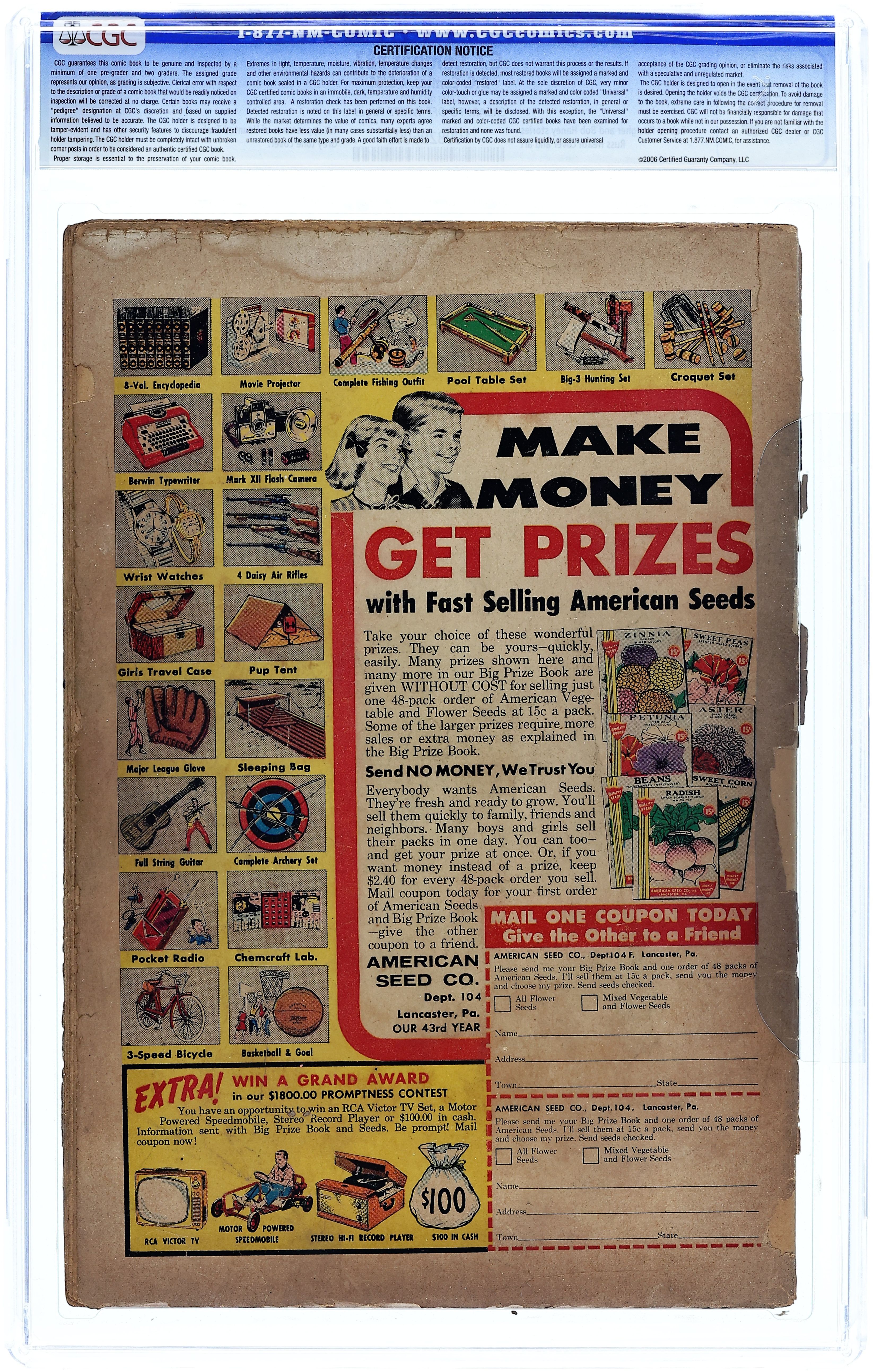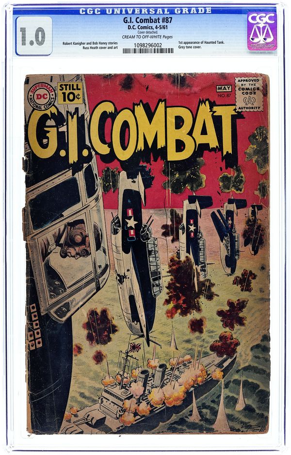 Cover by Russ Heath and Jack Adler (washtone). Written by Robert Kanigher and Bob Haney. Art by Russ Heath. The Haunted Tank takes on several German Tiger tanks in a small town, managing to destroy them even though the little Stuart tank is outclassed, in "Introducing -- the Haunted Tank" by Robert Kanigher and Russ Heath. Featuring the first appearances of the Haunted Tank, Jeb Stuart, Arch Asher, Rick Rawlins, Slim Stryker and General J.E.B. Stuart (ghost). Plus: Back-up story "Dead End!" by Bob Haney and Heath. And: 2-pager "World War II Battle Story of...the 4th Marine Division." 36 Pages, Full Color. Cover price $0.10.