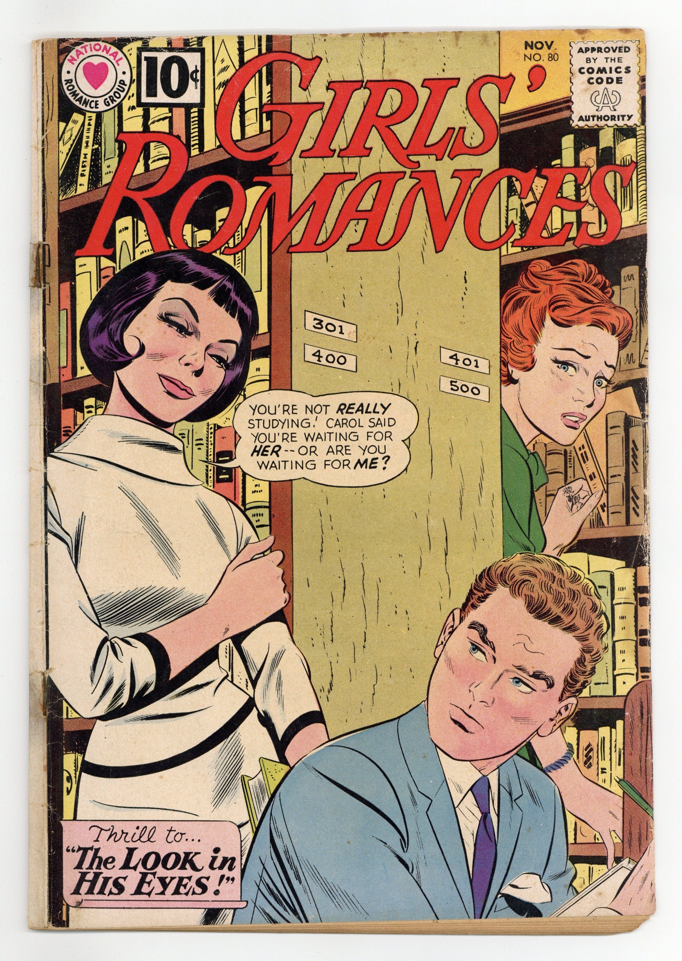 Featuring: 8 page story "Carnival of Heartache" pencilled by Sy Barry; 7 page story "Panic in My Heart" drawn by Mike Sekowsky and Bernard Sachs; 7 page story "A Seeing Heart" drawn by Tony Abruzzo and Bernard Sachs; 2 page Julia Roberts, Romance Counselor letters page (title of column changes); 8 page story "The Look in His Eyes" pencilled by John Romita, Sr. Cover pencils by John Romita, Sr. Cover price $0.10.