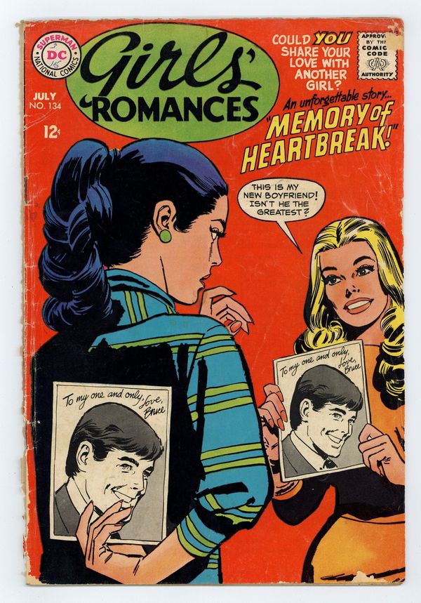 How Do I Love You?, pencils by Jack Sparling; Paula keeps falling in and out of love with various boys, recounting everything in her diary. House ad for Falling in Love #100, pencils by Jay Scott Pike. If Love Had Its Way, inks by Bernard Sachs; When Mindy becomes the pupil of famous pianist Greg Talmadge, she falls in love with him but he only wants to use her as an example of his talent as a mentor. Julia Roberts Romance Counselor advice column. Princess...American Style, pencils by John Rosenberger; The story of the most recent winner of the Miss American Teen-Ager contest sponsored by the Palisades Amusement Park, and what happens to her after winning. House ad for Wonder Woman #177, art by Irv Novick. Memory of Heartbreak!, pencils by Neal Adams (pg. 1) and Jay Scott Pike; Leslie is shocked when her best friend shows her a photo of her boyfriend - who happens to be Leslie's boyfriend as well. 36 pgs. $0.12. Cover price $0.12.