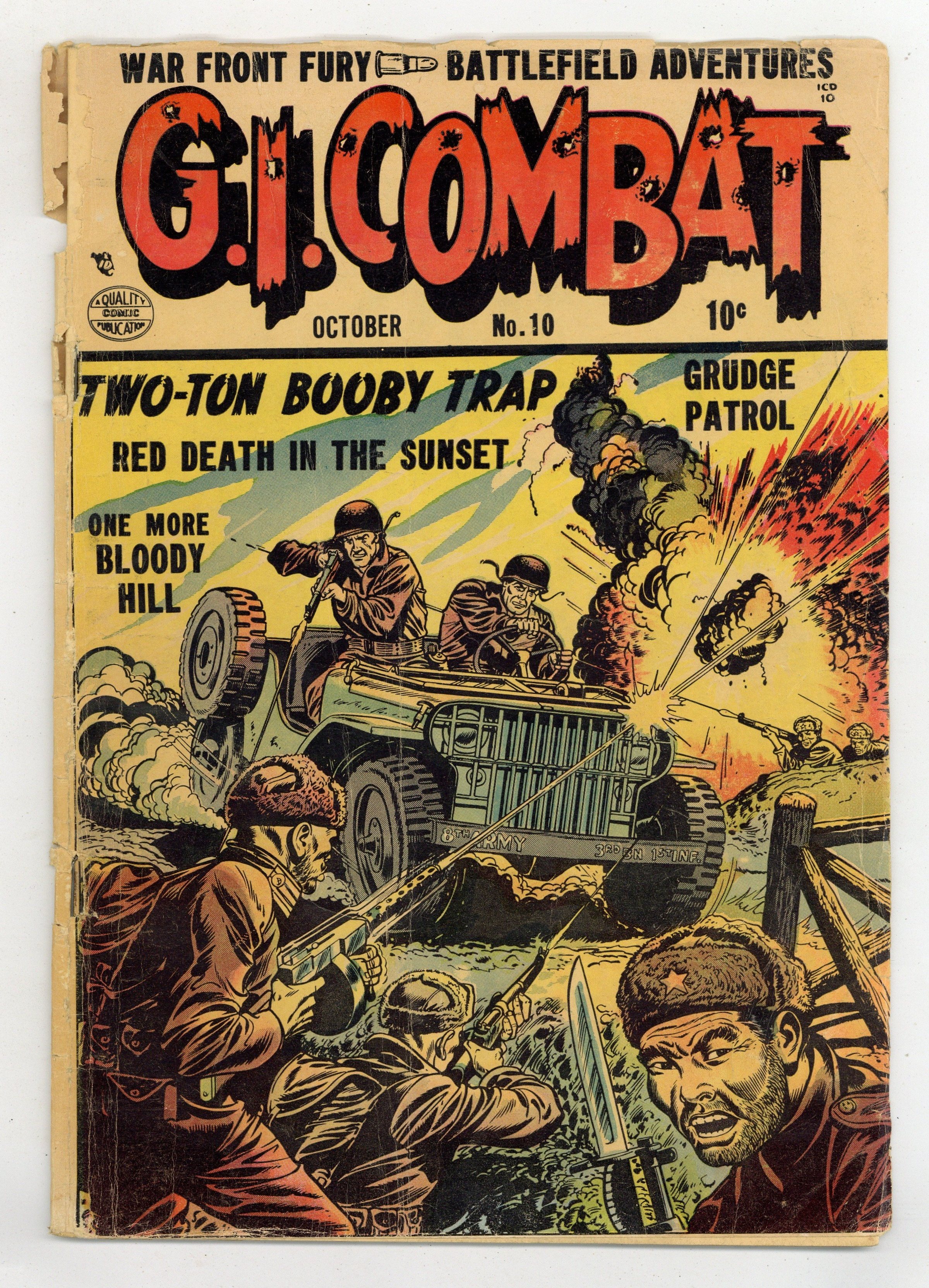October 1953: Cover by Dick Dillin and Charles Cuidera; "One More Bloody Hill," 9 pages; "Red Death in the Sunset," 6 pages; "Grudge Patrol," 7 pages; "Tank Jockey," 1 page text story; "Two-Ton Booby Trap," 6 pages. 36 Pages, Full Color. Cover price $0.10.