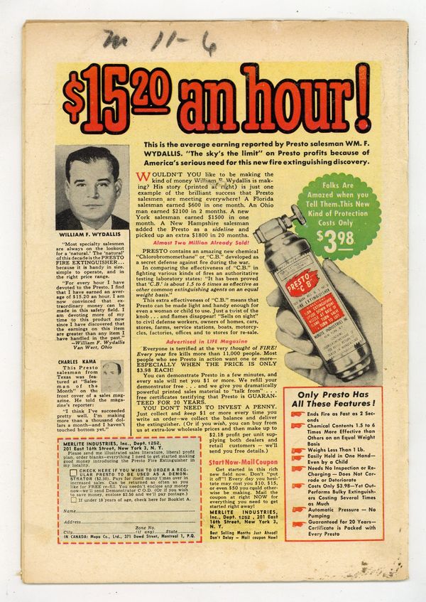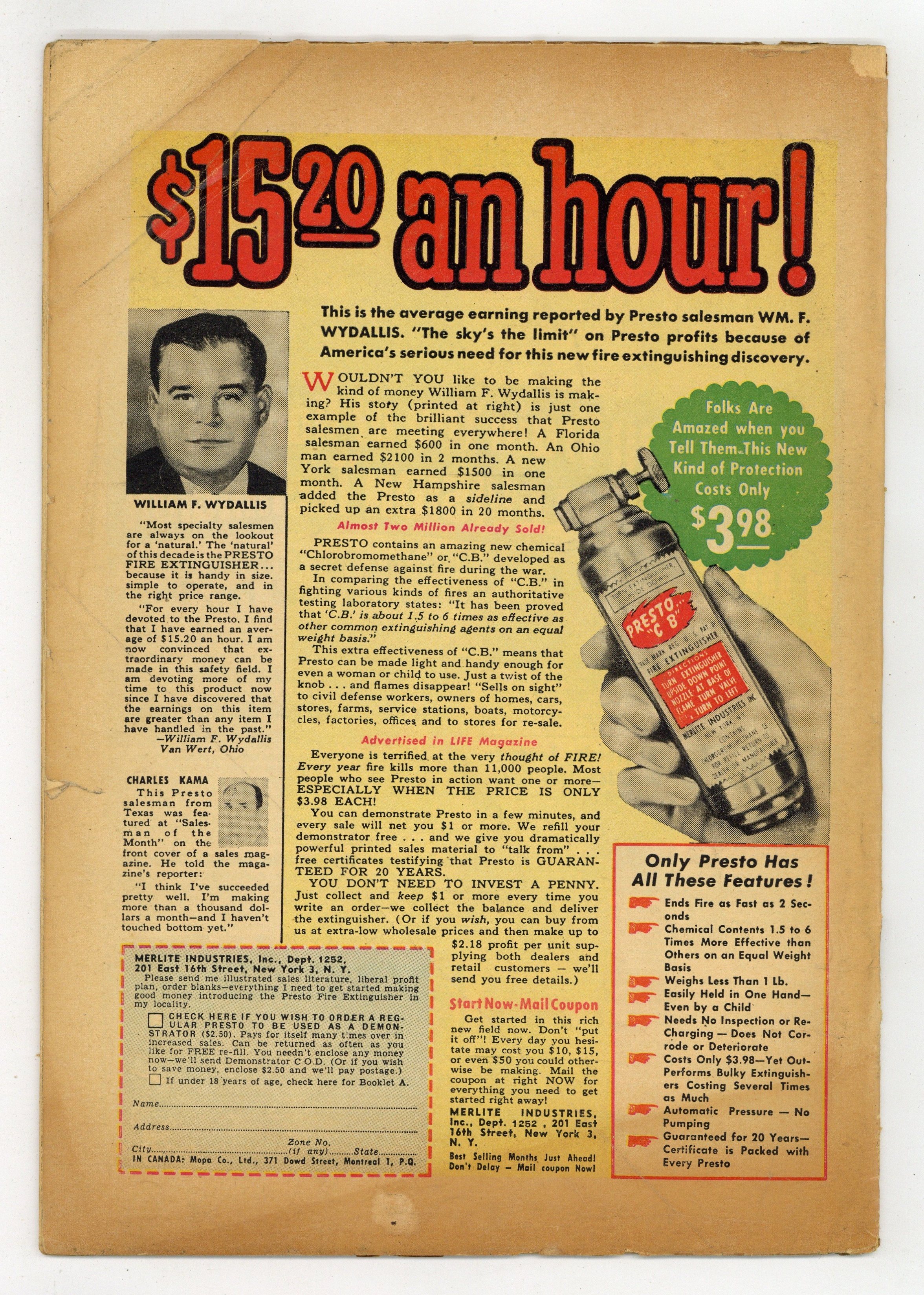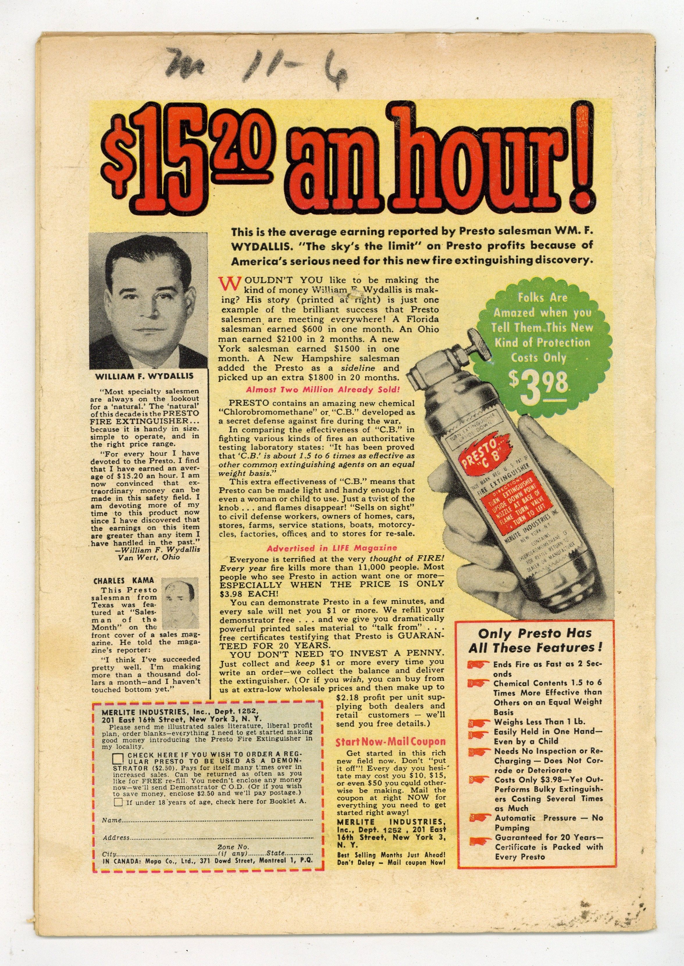 $65.00- Cover oxidation. 1/2" tear on back cover.
