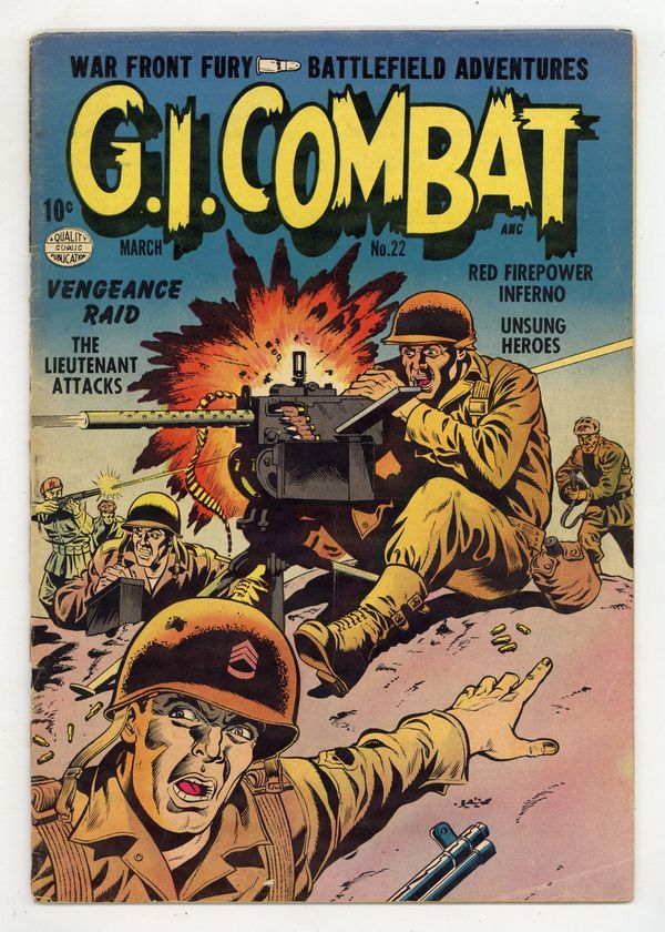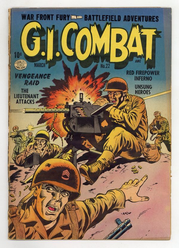 "Red Firepower Inferno" starring Captain Denning, Commander Marlow, Drake, Major Vince Collins, and Sgt. Harte; vs. General Ti Kung and Lu. "Vengeance Raid," script by Joe Millard, art by Sam Citron; Corporal Sam Crane, usually mild mannered, is changed into an unstoppable agent of vengeance when he finds what the enemy has done to his best friend. "The Lieutenant Attacks"; The company's beloved Lieutenant dies in battle, and his replacement finds that he will get the cold shoulder from his men until he can prove himself. "Top Secret" text story. "The Unsung Heroes" starring Pvt. Willie Dawson and Grub (Sgt. Mullins); Korean War story. 36 Pages, Full Color. Cover price $0.10.