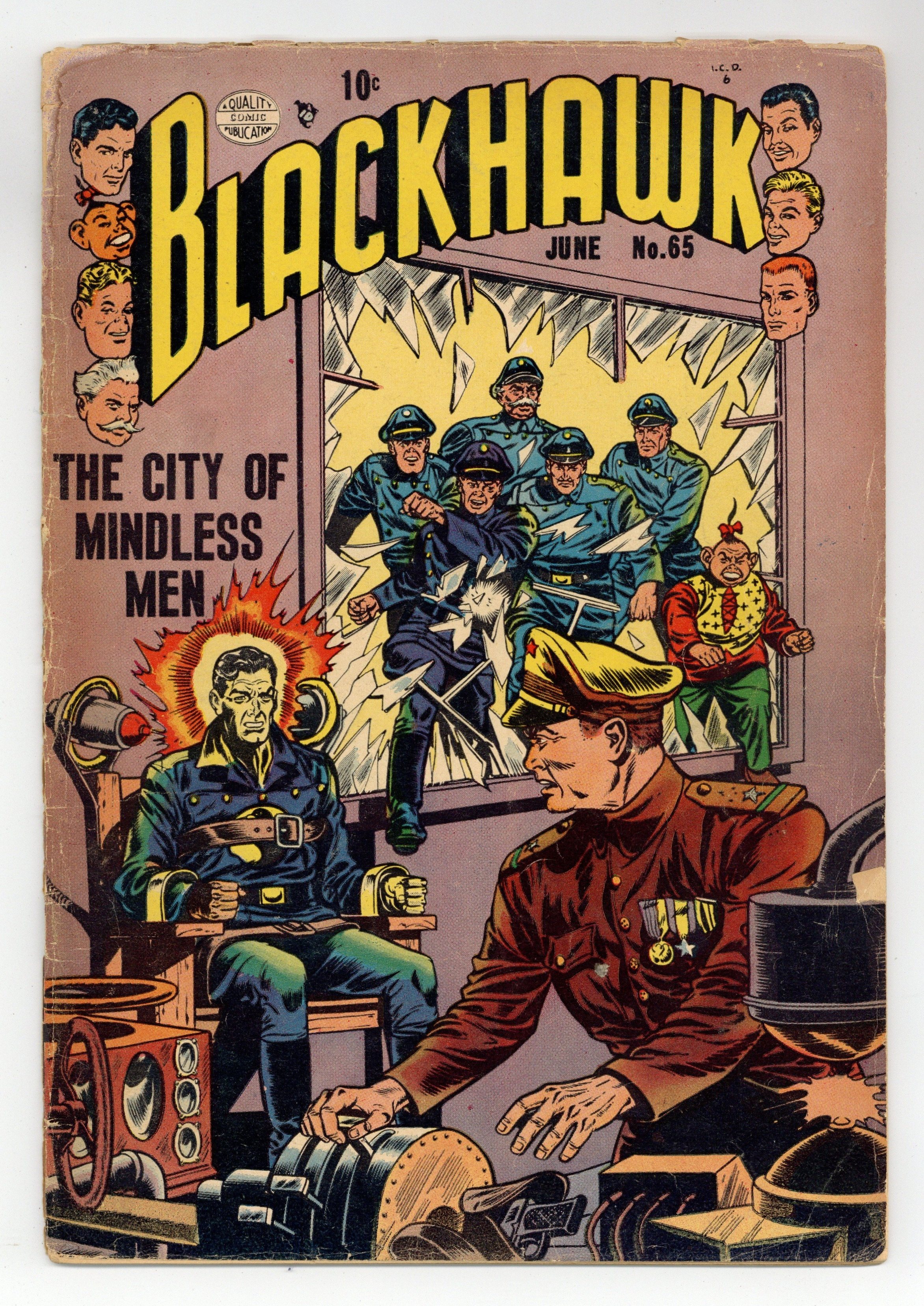 Stories by Paul Gustavson and unknown. Art by Paul Gustavson, Chuck Cuidera and unknown. Featuring Blackhawk in: "Dungeon of Fear" with inks by Chuck Cuidera; "The City of Mindless Men"; and "The Space Mirror"! Plus: Chop Chop in an untitled back-up story by Paul Gustavson. And: 1-page text story "Diplomatic Courier"! 36 Pages, Full Color. Cover price $0.10.