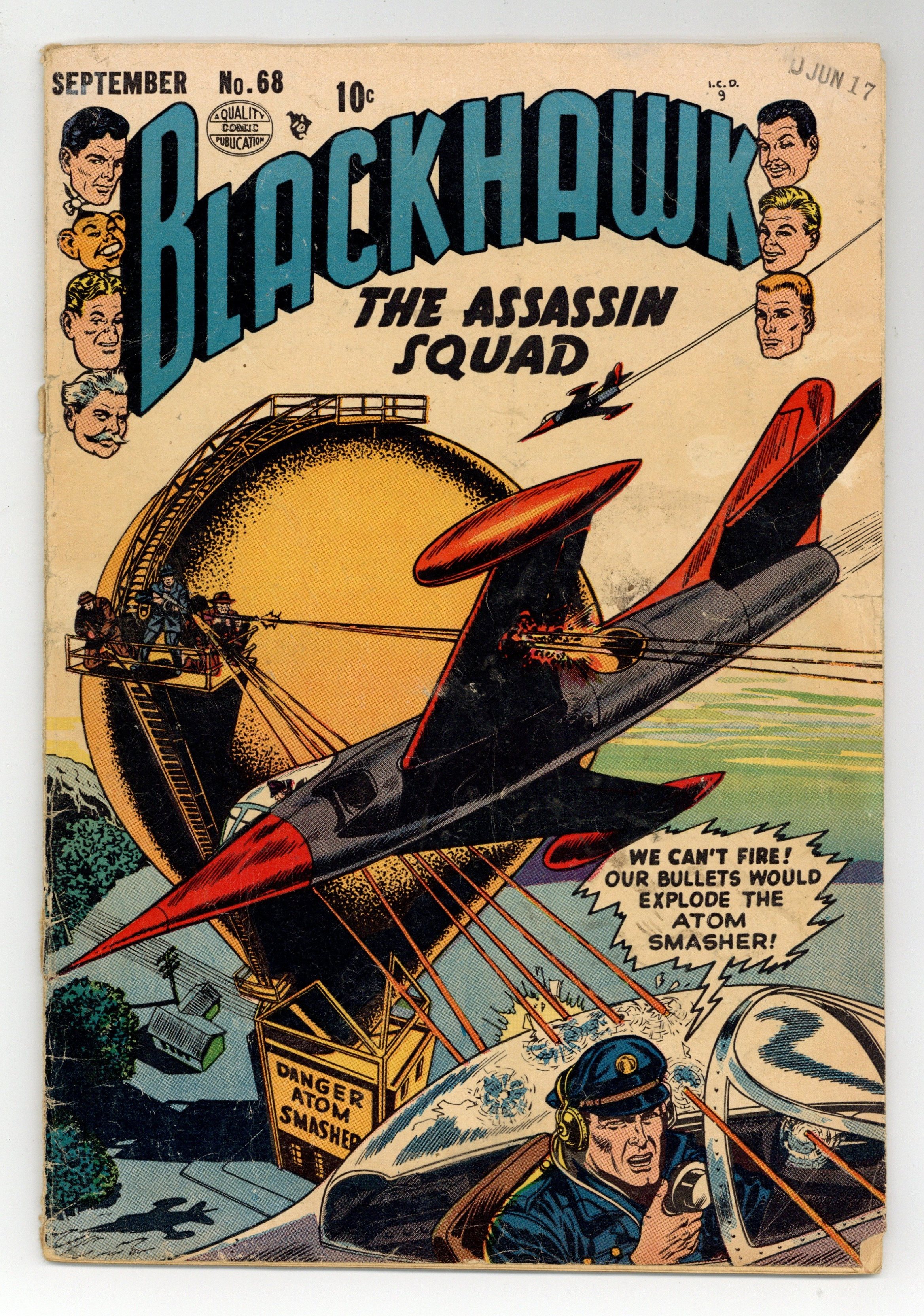 Stories by Dick Wood, Paul Gustavson and unknown. Art by Paul Gustavson, Dick Dillin, Chuck Cuidera and unknown. Featuring Blackhawk in: "A World-Wide Manhunt" with story by Dick Wood; "The Assassin Squad" with pencils by Dick Dillin; "Killers of the Kremlin" with art by Dillin and Chuck Cuidera; and 1-page text story "Blackhawk's Challenge," reprinted from Modern Comics (1945) #95. Plus: Chop Chop in an untitled back-up story by Paul Gustavson. 36 Pages, Full Color. Cover price $0.10.