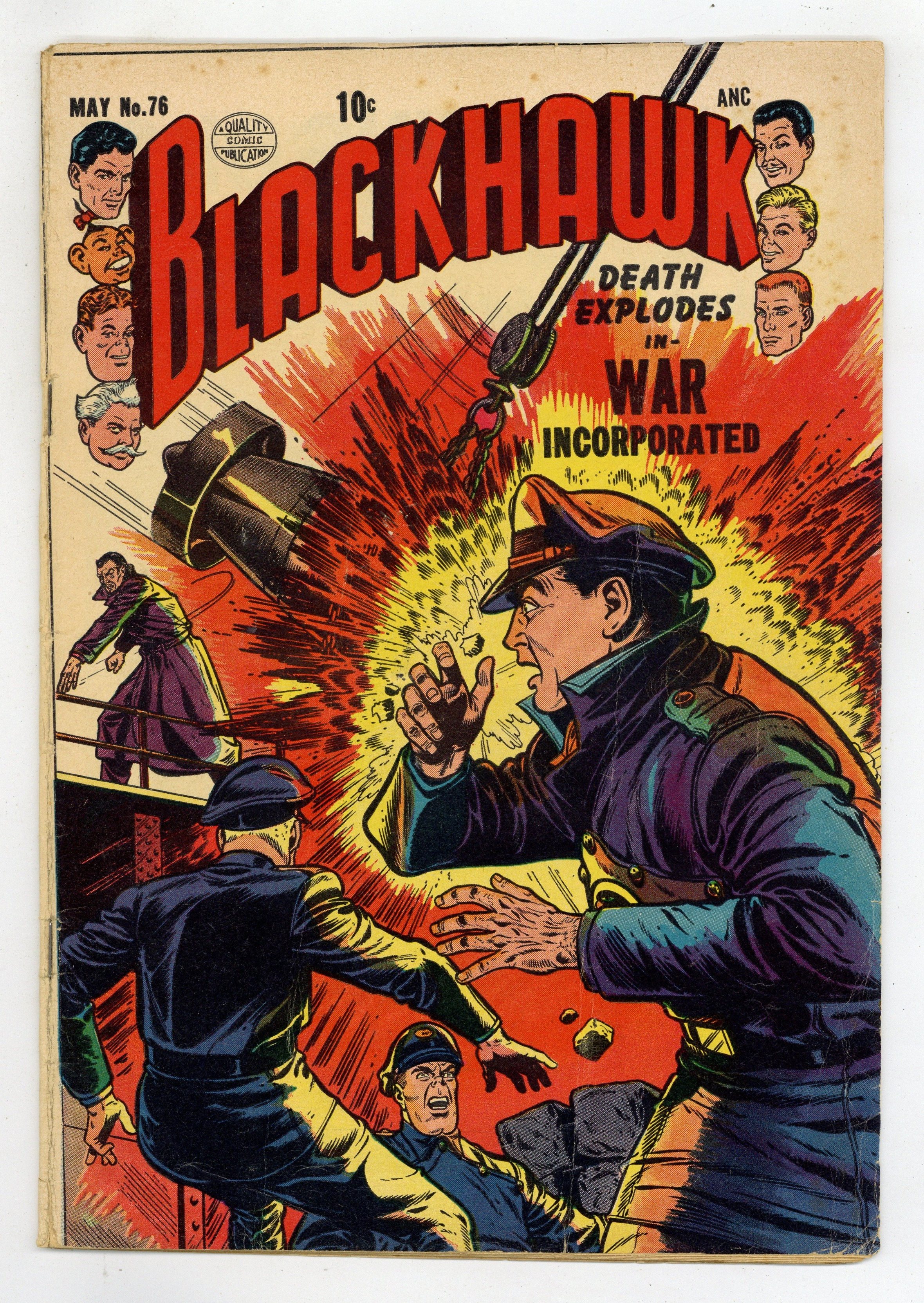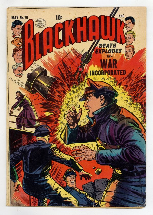 Cover by Dick Dillin and Chuck Cuidera. Stories by Paul Gustavson and unknown. Art by Paul Gustavson, Dick Dillin and Chuck Cuidera. Featuring Blackhawk in: "Hell's Hero" with art by Dick Dillin and Chuck Cuidera; "War Incorporated" with art by Dillin and Cuidera; and "The King of Blackhawk Island" with art by Dillin and Cuidera. Plus: Chop Chop in an untitled back-up story by Paul Gustavson, reprinted from issue #43 (with changes). And: 1-page text story "Revenge"! 36 Pages, Full Color. Cover price $0.10.
