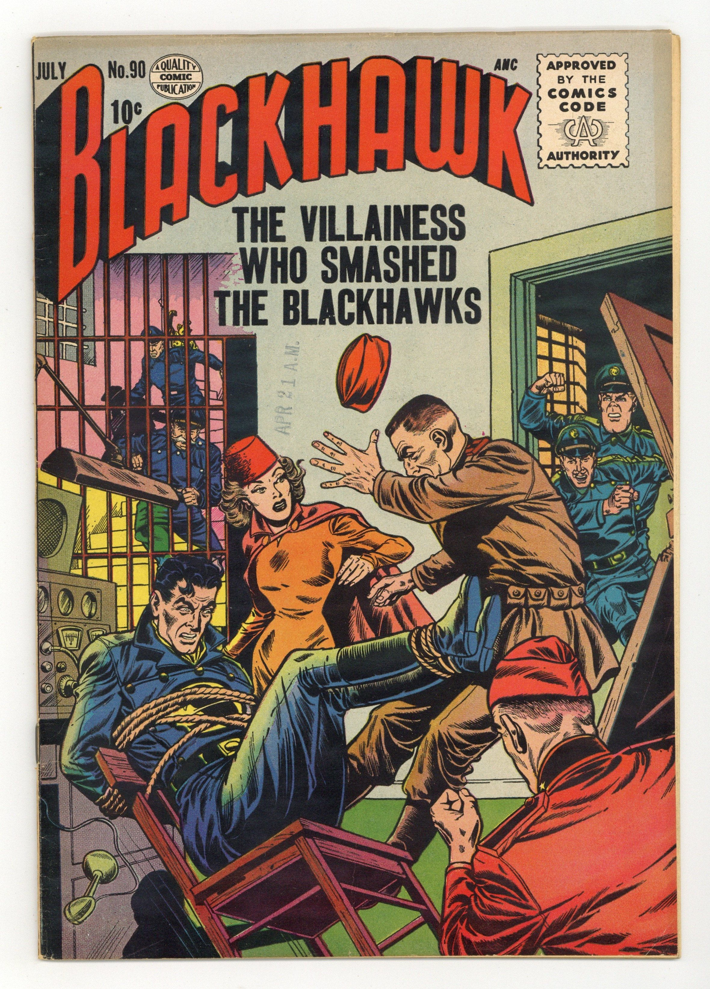 Cover by Dick Dillin and Chuck Cuidera. Stories by Dick Wood, Paul Gustavson and unknown. Art by Dick Dillin, Paul Gustavson and Chuck Cuidera. Featuring Blackhawk in: "The Storm King" by Dick Wood, Dick Dillin and Chuck Cuidera; "The Bubbles of Doom" by Wood, Dillin and Cuidera; and "The Villainess Who Smashed the Blackhawk Team" by Wood, Dillin and Cuidera. Plus: Chop Chop in an untitled back-up story by Paul Gustavson, reprinted from issue #58. And: 1-page text story "Trap for Trappers"! 36 Pages, Full Color. Cover price $0.10.