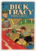 Stories and art by Chester Gould and Bill Ely. Dell reprints the original comic-strip adventures of legendary tough cop Dick Tracy and his rogues gallery of freakish enemies. This issue reprints strips from Jan. 27 - March 6, 1936. Tracy's investigation of a murder leads to gangster Lips Manlis. Before he can act, Lips sets an elevator deathtrap for Tracy. The backup feature by Bill Ely stars tough cop Jim O'Brien, a plainclothes detective nicknamed The Iron Man. Dick Tracy; Dick Tracy Reports to You; The Iron Man. 36 pages, full color. Cover price $0.10.