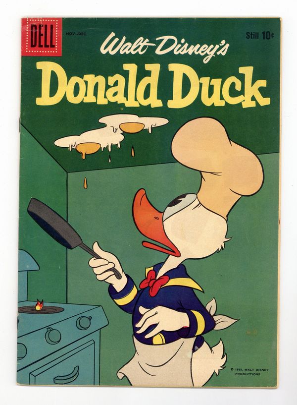 Published Dec 1959 by Dell/Gold Key/Whitman.$7.30Cover by Tony Strobl. Stories and art by Carl Barks, Tony Strobl, John Liggera, Steve Steere, and Bob Gregory. The classic adventures of Disney's Donald Duck, featuring art by Carl Barks and other great Disney artists. Donald and his nephews travel to Europe to find an extinct wood species to recreate the famous Pasidarius violins. Goofy gets a job with help from a monkey. Glassblower Donald is hired to repair the glass face on a clock tower. The Fabulous Fiddlesticks; The Big Bad Blowhard; Goofy: Hired and Fired; The Master Glasser; Breakfast in Bed. 32 pages, Full Color. Cover price $0.10.