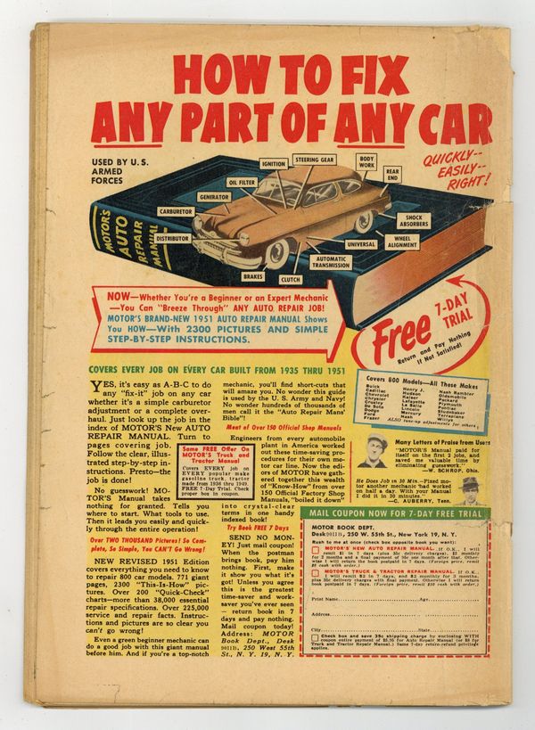 Ends Dec 8 8:24 PM CST Bid History 3 bids Current Bid $4 Your Secret Max Bid If you'd like to bid, please log in or register. Cover by Ken Bald. Edited by Richard E. Hughes. Stories by Charles Spain Verral and others. Art by Ogden Whitney, King Ward, Emil Gershwin, Edvard Moritz and Leo Morey, plus one story by Al Williamson, Frank Frazetta, Wally Wood, and Joe Orlando. An anthology series featuring tales of fantasy, horror, and science fiction from legendary early independent comics publisher ACG. A couple studying ancient castles in Europe comes upon one that is the lair of an ancient vampire, situated on an inaccessible peak. Another couple accidentally flung into space on an experimental balloon lands on a purgatory planet inhabited by atomic mutants, in a story full of ludicrous science and genuinely disturbing art by King Ward. But the real gem is about a boy who accidentally summons the spirit of a vengeful sorcerer while playing with the skull on his fathers desk. This oft-reprinted story, Skull of the Sorcerer, features pencils by EC legend Al Williamson, inks by Joe Orlando and Wally Wood, and one panel (page 6 panel 3?) inked by Frank Frazetta himself. Lair of the Vampire; The Return; The Vengeful Spirit; The Domain of the Doomed; Giants on the Earth; Skull of the Sorcerer; Pursuit Into the Past. 48 pages, Full Color. Cover price $0.10.