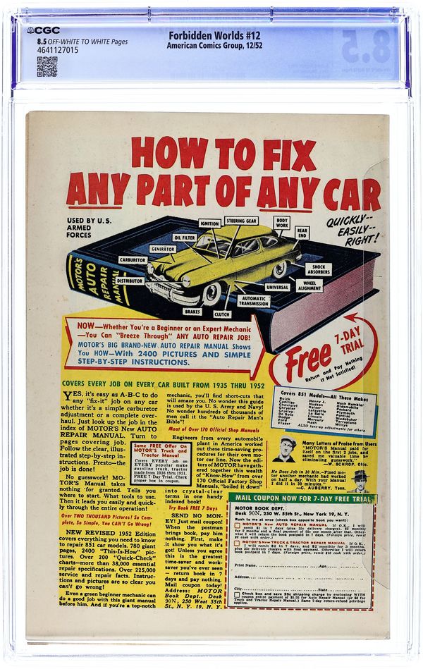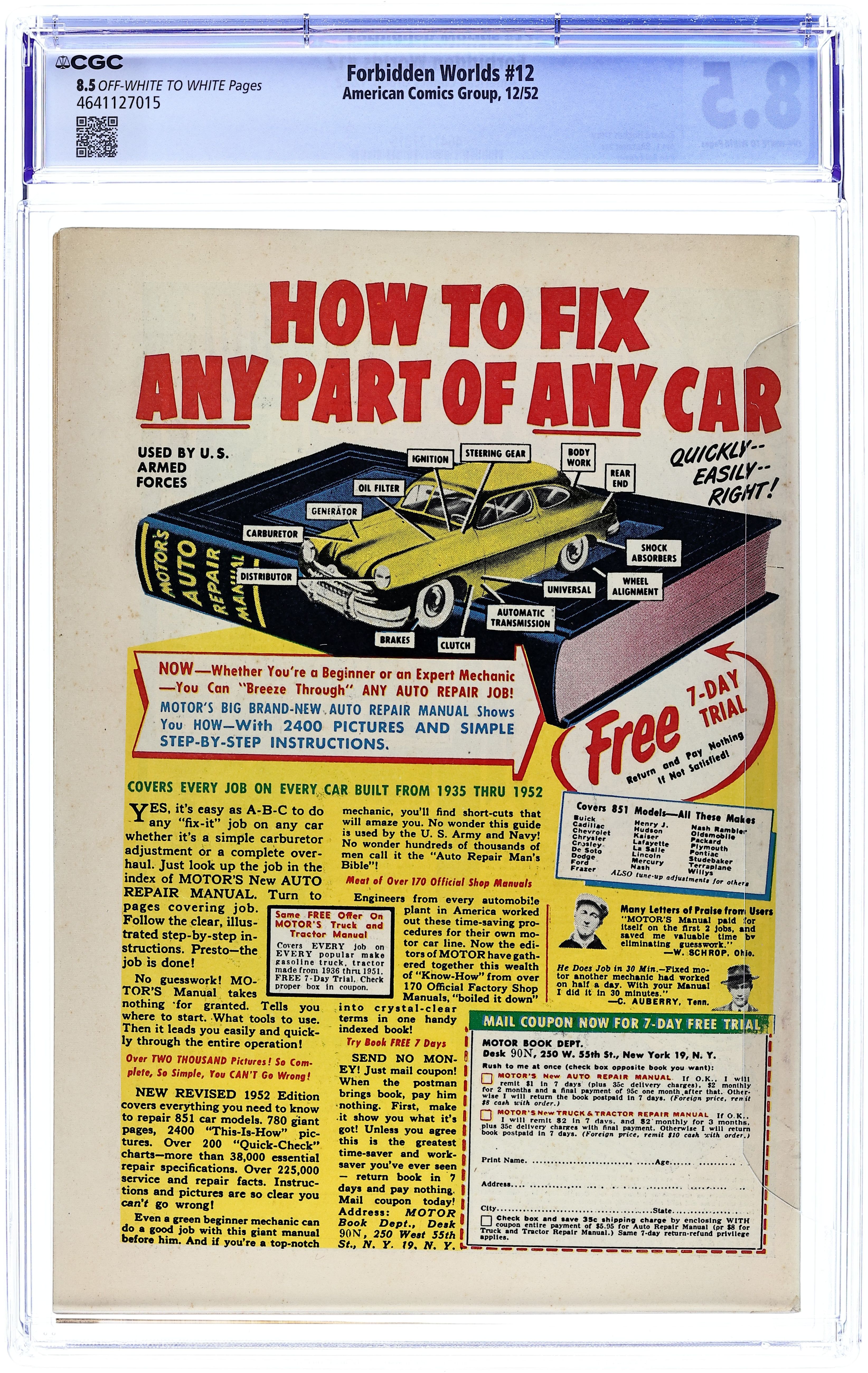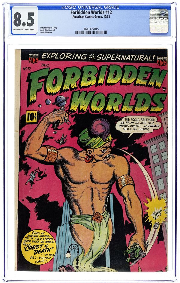 Cover by Ken Bald. Edited by Richard E. Hughes. Art by King Ward, Charles Nicholas and Jon Blummer. An anthology series featuring tales of fantasy, horror, and science fiction from legendary early independent comics publisher ACG. The strange story of a ghost army at the Battle of Buena Vista in the Mexican-American War; The genie released from an ancient box sets out to fulfill his thousand-year-old promise to destroy humankind; Honeymooners discover that the executed witches of Salem have left behind a fearsome curse. The Chest of Death; True Ghost Armies; The Haitian Puppet; Were-Spiders Doom; The Tomb of the Unseen; The Witch's Curse. 36 pages, Full Color. Cover price $0.10.