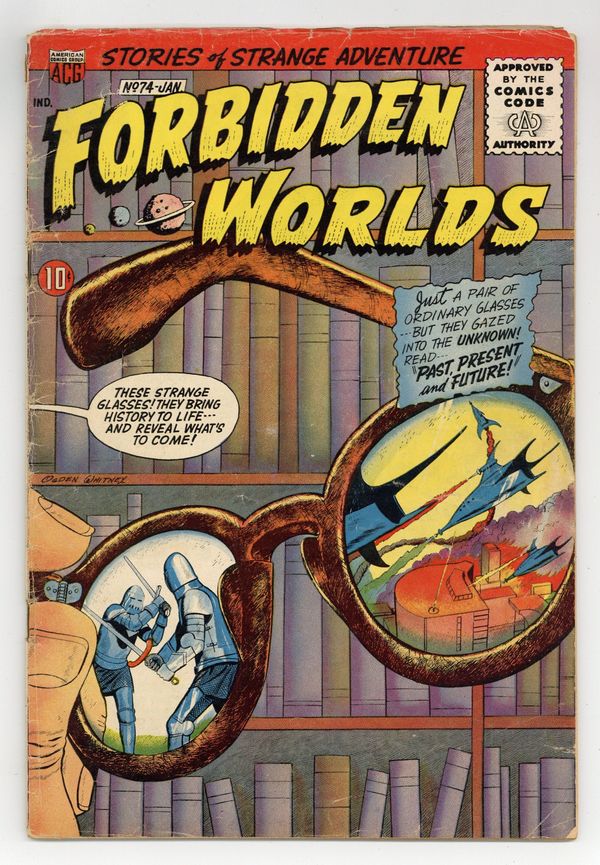 Cover by Ogden Whitney. Edited by Richard E. Hughes. Art by John Buscema, John Forte, John Rosenberger and Paul Reinman. An anthology series featuring tales of fantasy and science fiction adventure from legendary early independent comics publisher ACG. A meteorologist investigates a snowstorm in July and winds up battling a time-traveling sorcerer 100 years in the past; A haunted house one-pager featuring early work by legendary Marvel and Conan artist John Buscema; A special pair of glasses lets a man see both the distant past and the future. A Highly Localized Snowfall!; 1207 Pickett Lane; The Second Visit!; Past, Present, and Future! 32 pages, Full Color. Cover price $0.10.