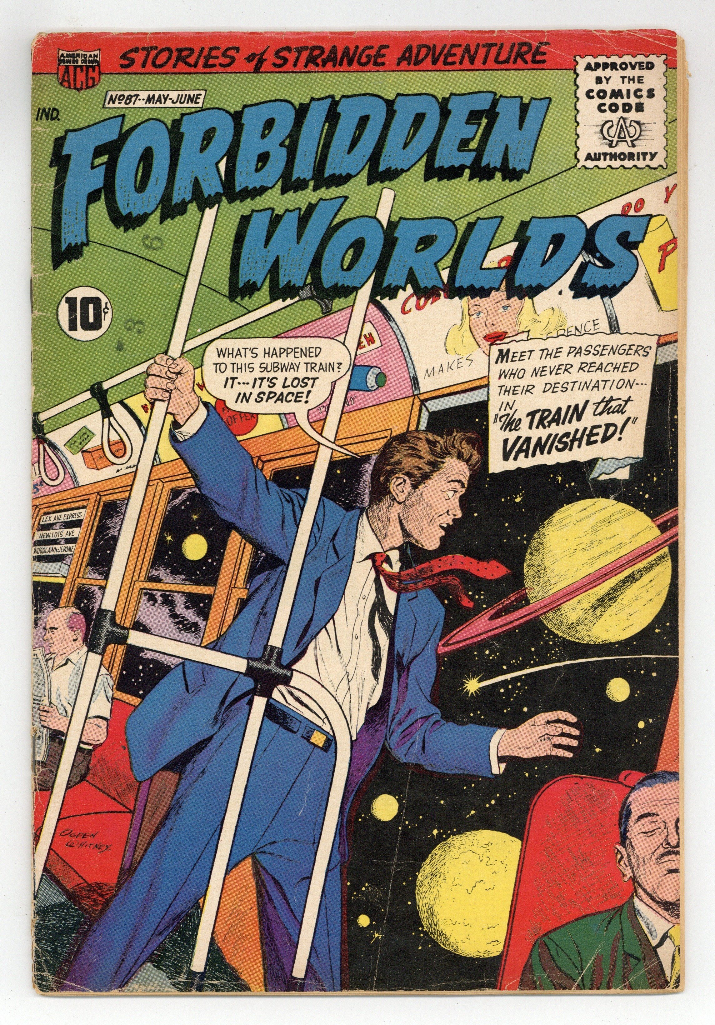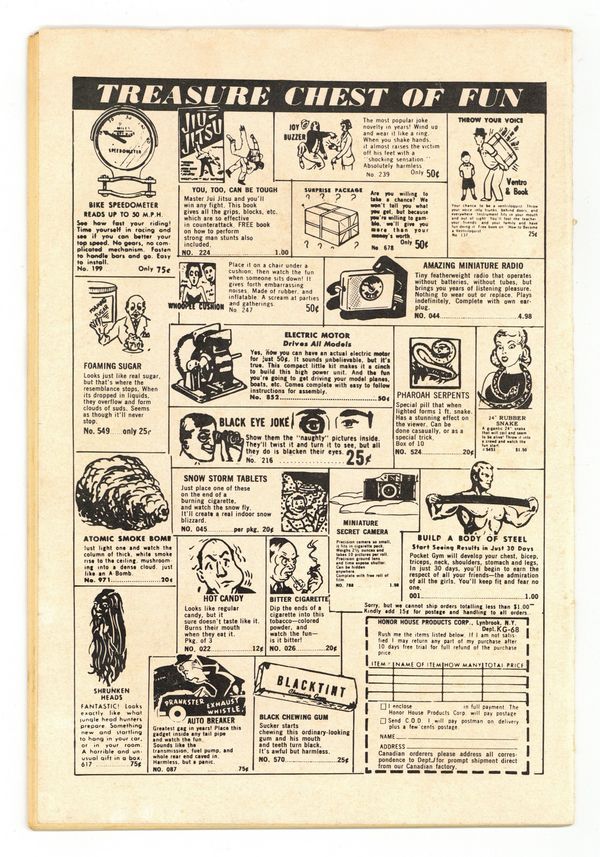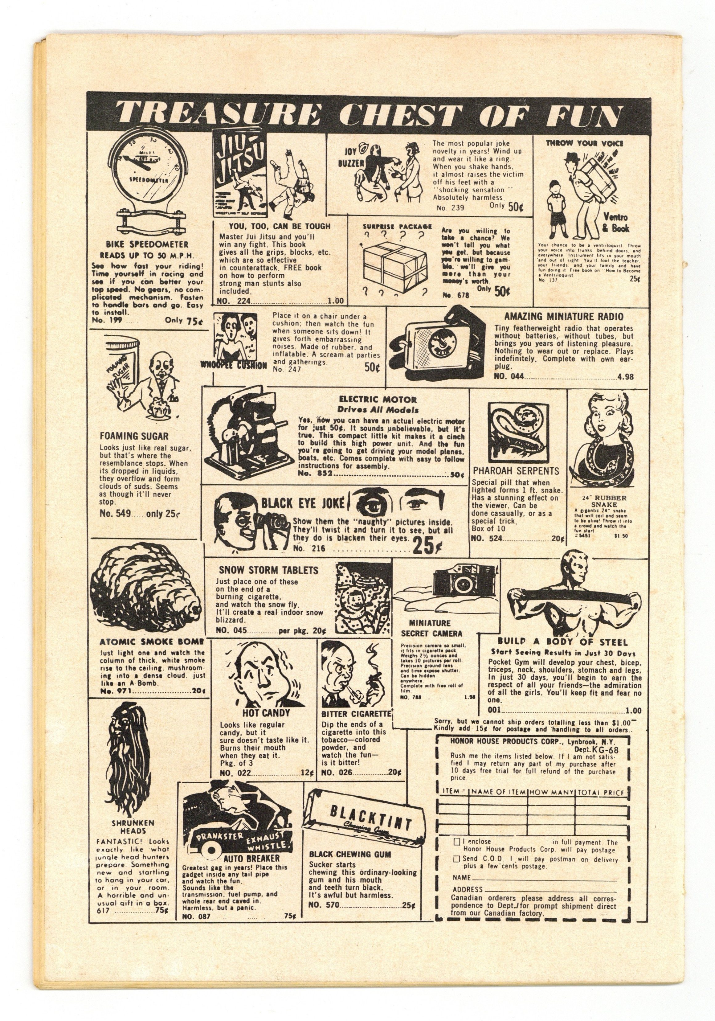 "The House in the Fog!" (script by "Charles Lacoste"; art by Kurt Schaffenberger); "The Train That Vanished!" (script by Jonathan Burns; art by John Buscema); "The Amazing Talent of Horace Frisbee!" (script by Richard Hughes as "Shane O'Shea"; art by "Mark Midnight"); and "Puzzle of the Deep!" Ogden Whitney cover. Cover price $0.10.