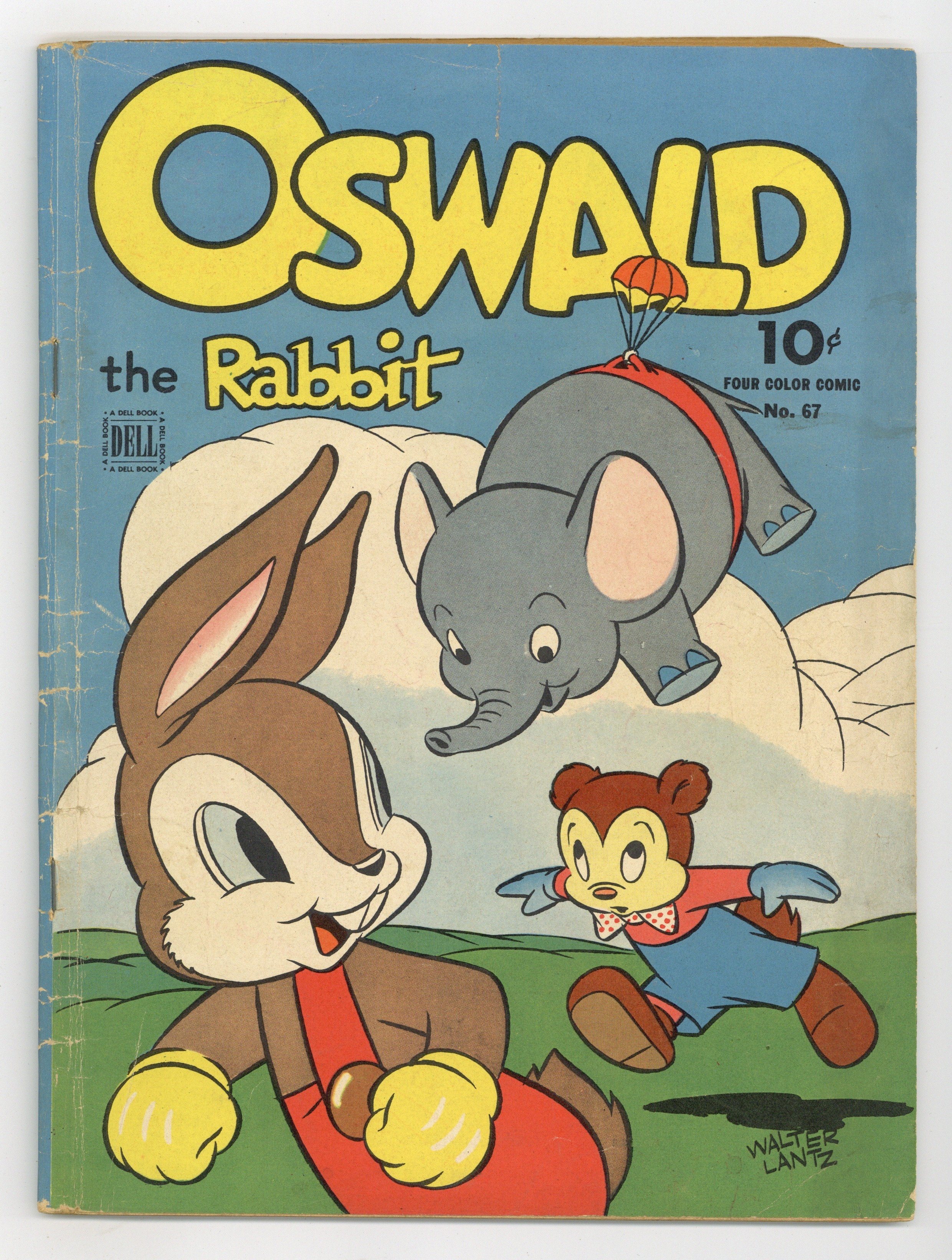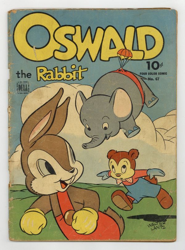 Indicia title is "OSWALD THE RABBIT, No. 67." Cover art by Dan Gormley. Untitled Oswald the Rabbit story, script by John Stanley, art by Lloyd White; Oswald and Toby fall into a deep hole at the top of a mountain and end up in a strange land; Oswald and Toby are jailed when Toby accidentally picks the last flower in the kingdom. The Secret Six, script by John Stanley, art by Lloyd White; D. J. Rarebit, the president of a large company, is threatened by "The Secret Six"; He hires Oswald to impersonate him in hopes that the gang will "knock off" Oswald and think it was him. 52 pages, full color. Cover price $0.10.