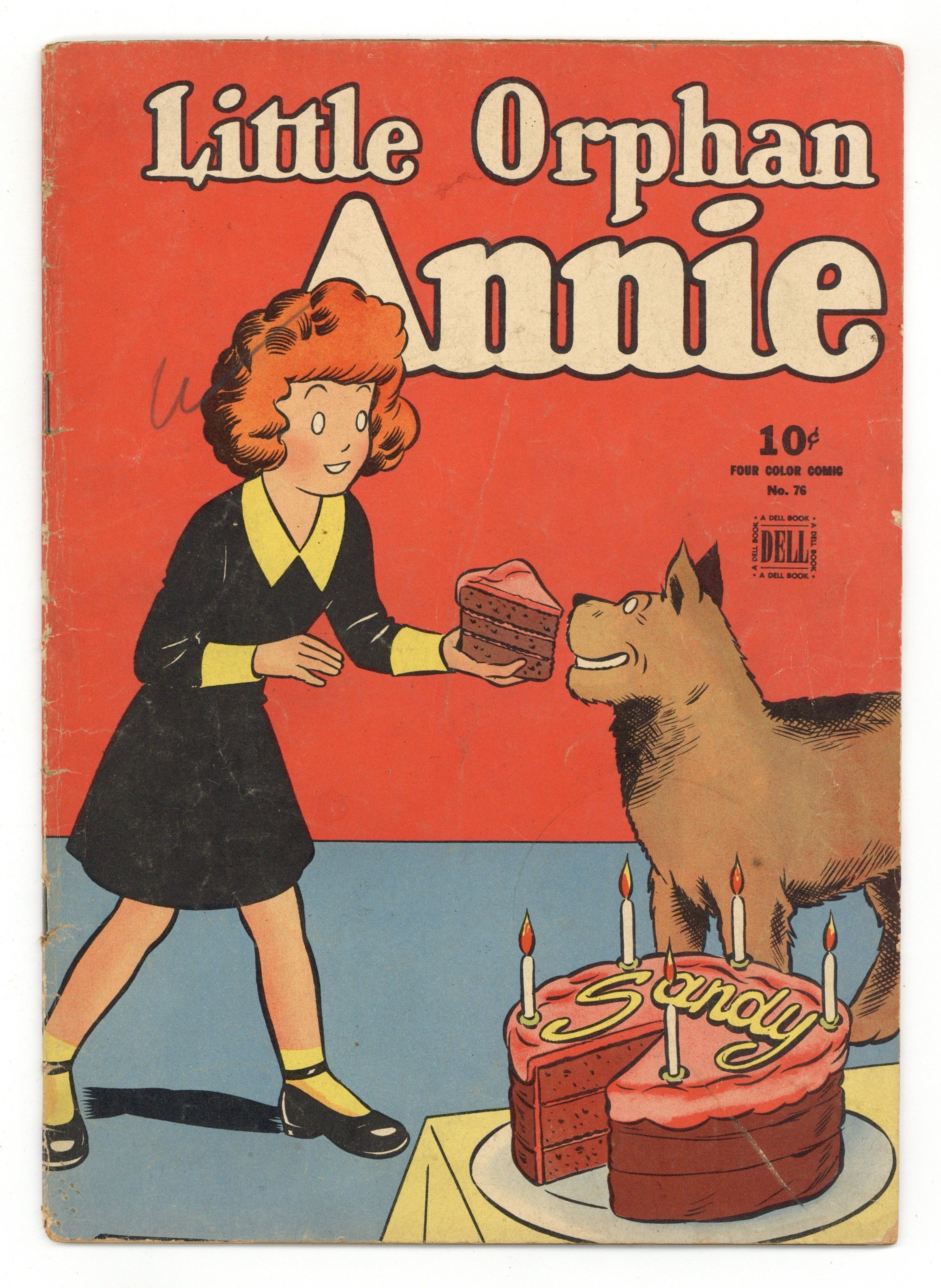 Indicia titles is "LITTLE ORPHAN ANNIE, No. 76." Untitled Little Orphan Annie stories. The police and mob boss Nick Gatt use their own ways to try to find the mysterious Axel and keep him from harming Annie; Gatt's methods are more brutal--and more effective. Buck shoots Gregory as the shopkeeper tries to take Annie into a back room where Axel's men are waiting. Annie finds out that Axel and his followers plan to take over the country. While Nick Gatt is trying to figure out a way to stop Axel, Byron Bolo is working on a plan to eliminate Gatt and take over his rackets. Nick Gatt brings Annie back to the Tecums, but he and Bryan Bolo are both killed in an off-panel shootout. Reprinted from Little Orphan Annie (News-Tribune Syndicate) newspaper strips from 1940. 36 pages, full color. Cover price $0.10.