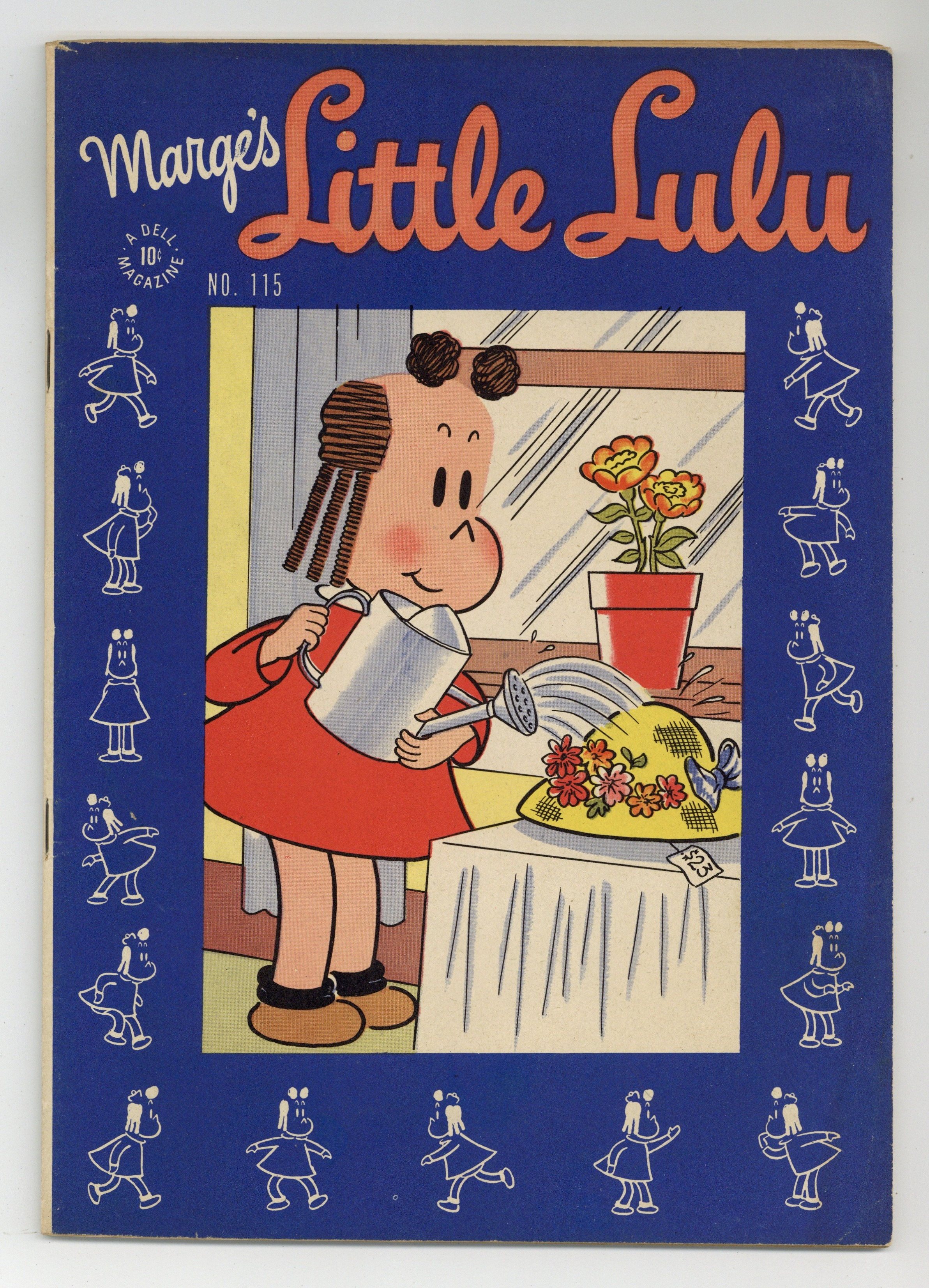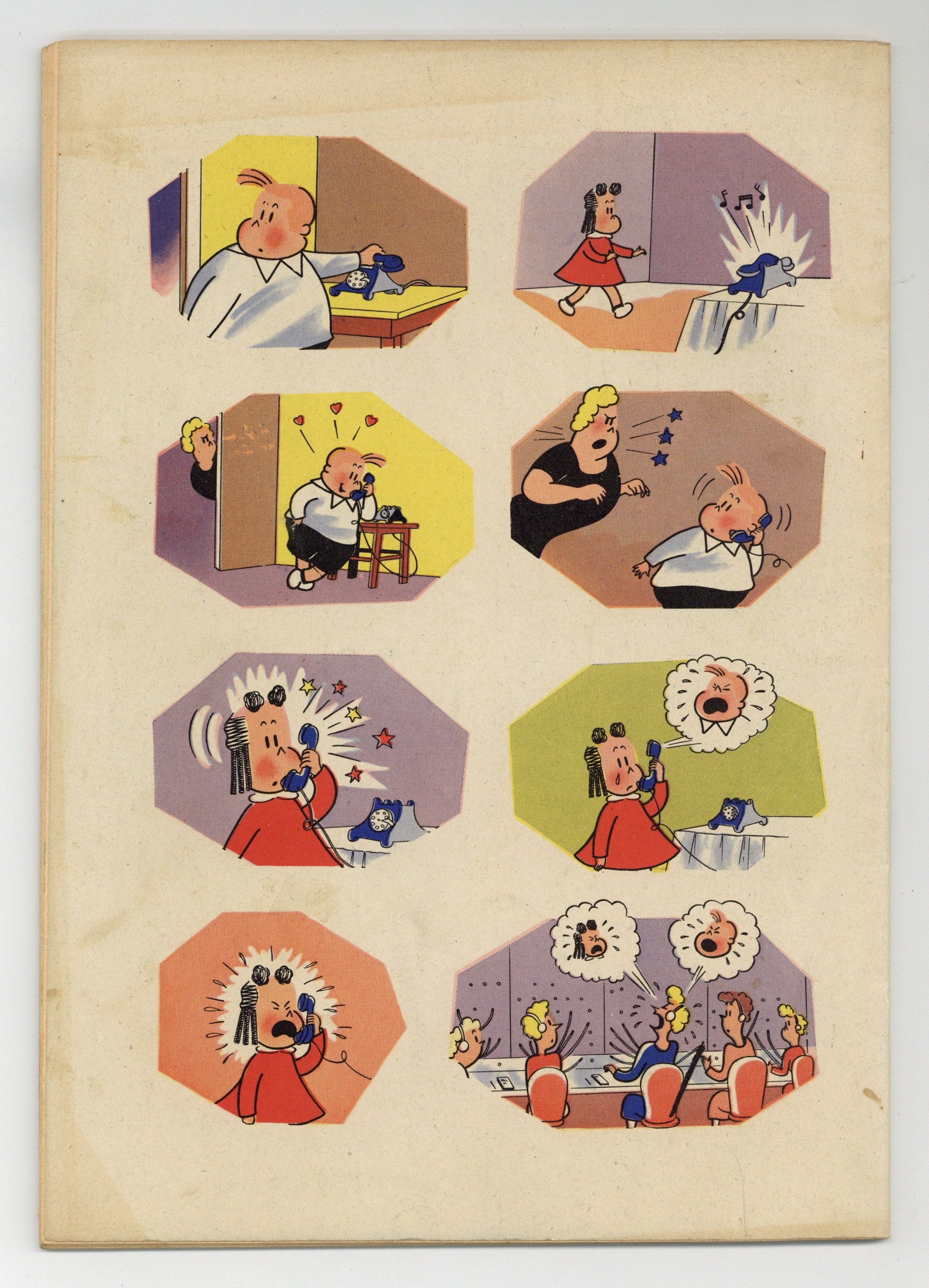 Cover art by John Stanley. Little Lulu Fights Back With a Club; Tubby dresses up like a girl to infiltrate and spy on Lulu's club, The Raiders. Little Lulu Brings Some Friends Home To Dinner; Lulu feeds some pigeons at the park that follow her home and come into the house. Little Lulu Tells a Tall Tale; Lulu tells Alvin about when she was marooned on a cannibal island. A Problem In Box Tops; Lulu and Tubby are in competition collecting box tops from cereal for prizes. The Haunted House; Lulu and Tubby meet some ghost kids when they explore a haunted house. Scripts and art by John Stanley. 52 pages, full color. Cover price $0.10.