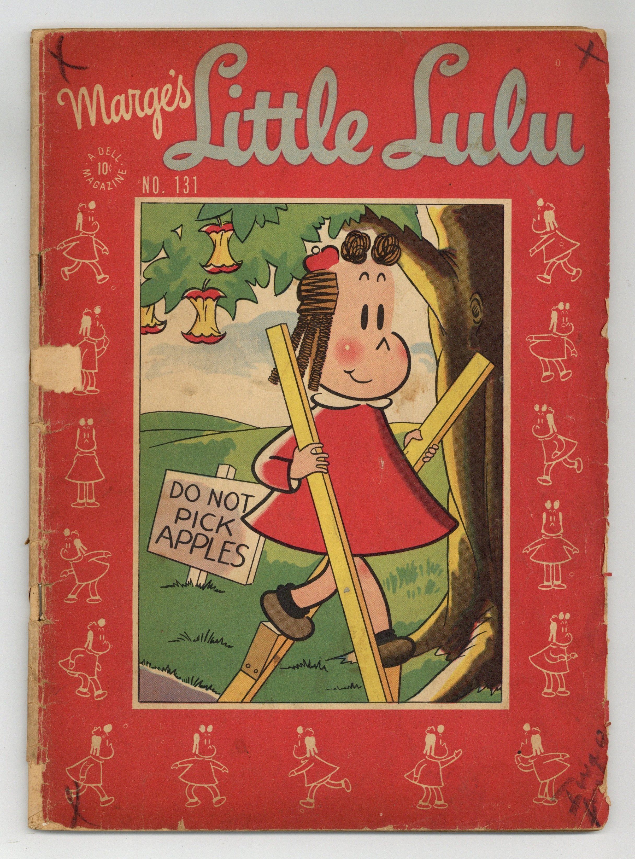 Indicia title is "MARGE'S LITTLE LULU, No. 131." Little Lulu Is Taken For a Ride; Kidnappers mistake Lulu for the rich girl, Gloria Van Potts, and abduct her from the park. One Man Dog; Alvin finds a dog but his mother won't let him keep it; Tubby wants the dog but Alvin won't give it up. Little Lulu and the Three Bears; Alvin wants Lulu to tell her the story of the Three Bears. Scripts by John Stanley, pencils by John Stanley (layouts) and Irving Tripp, inks by Irving Tripp. 52 pages, full color. Cover price $0.10.