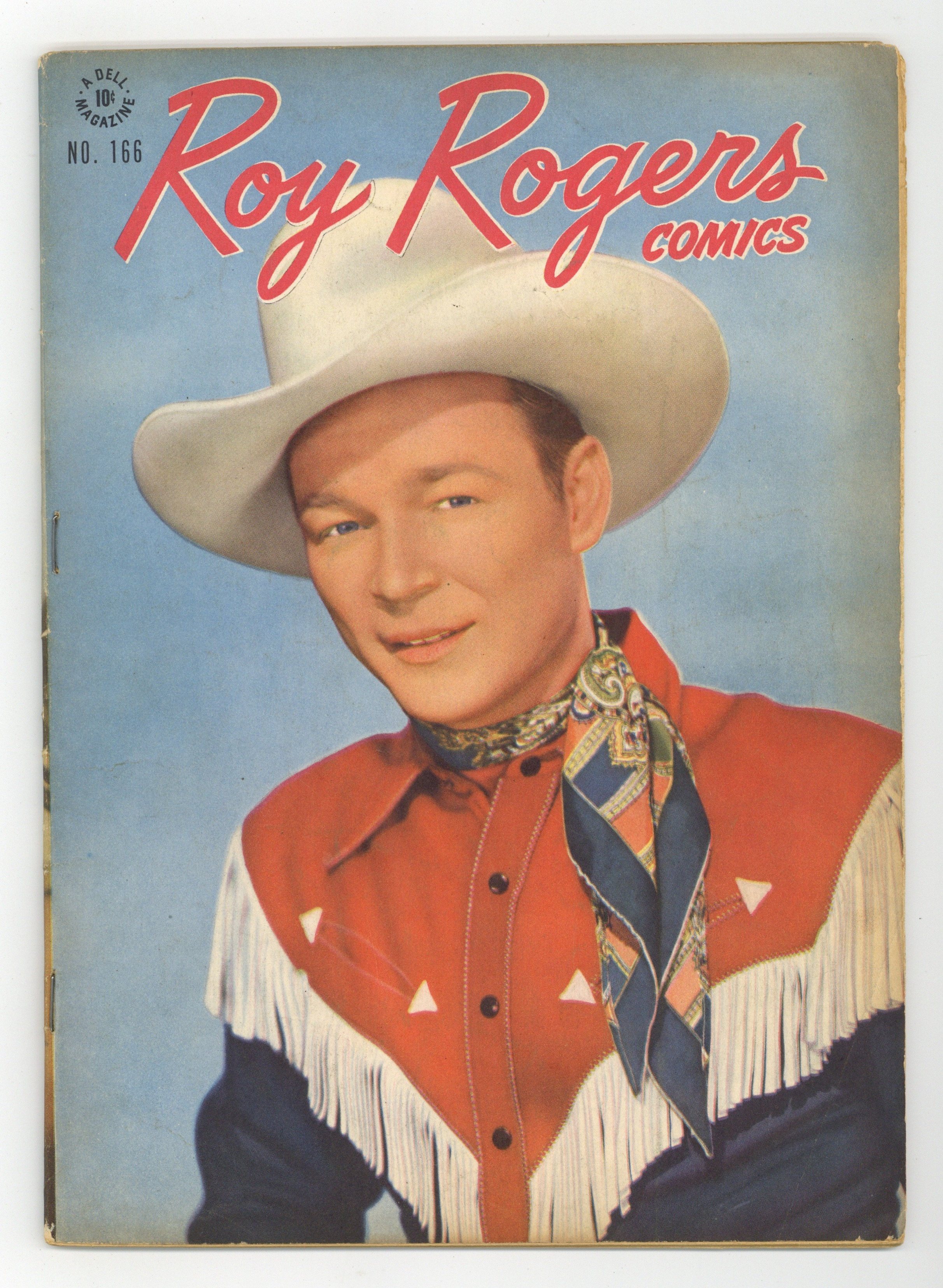 Indicia title is "ROY ROGERS COMICS, No. 166." Roy Rogers photo cover. The Basin Ranch Mystery, script by Gaylord Du Bois, art by Albert Micale; Roy comes to Belmore to search for the murderer of the son of a good friend, Pa Pendleton; On his way to the Basin Ranch, he finds Pa Pendleton, killed in the same manner as his son, with many knife slashes but no sign of his attackers. Roy Rogers inside back cover photo. Roy, Cheryl, and Linda Lou Rogers back cover photo. 52 pages, full color. Cover price $0.10.