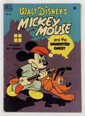 $29.00Indicia title is "Walt Disney's MICKEY MOUSE in "THE UNINVITED GUEST," No. 286." Cover art by Bill Wright. The Uninvited Guest, pencils by Riley Thompson; Mickey and the nephews are vacationing at the beach when a seal takes over their bathtub; The seal causes Mickey all sorts of problems; Mickey is kidnapped by a bank robber named Big Duke. Feat of Fancy, art by Tony Strobl; Mickey falls asleep during a chess match with Goofy and dreams he is a knight who has to defeat a dragon to win the hand of the fair Princess Minnie. Hot Day back cover strip, art by Bill Wright. 52 pages, full color. Cover price $0.10.