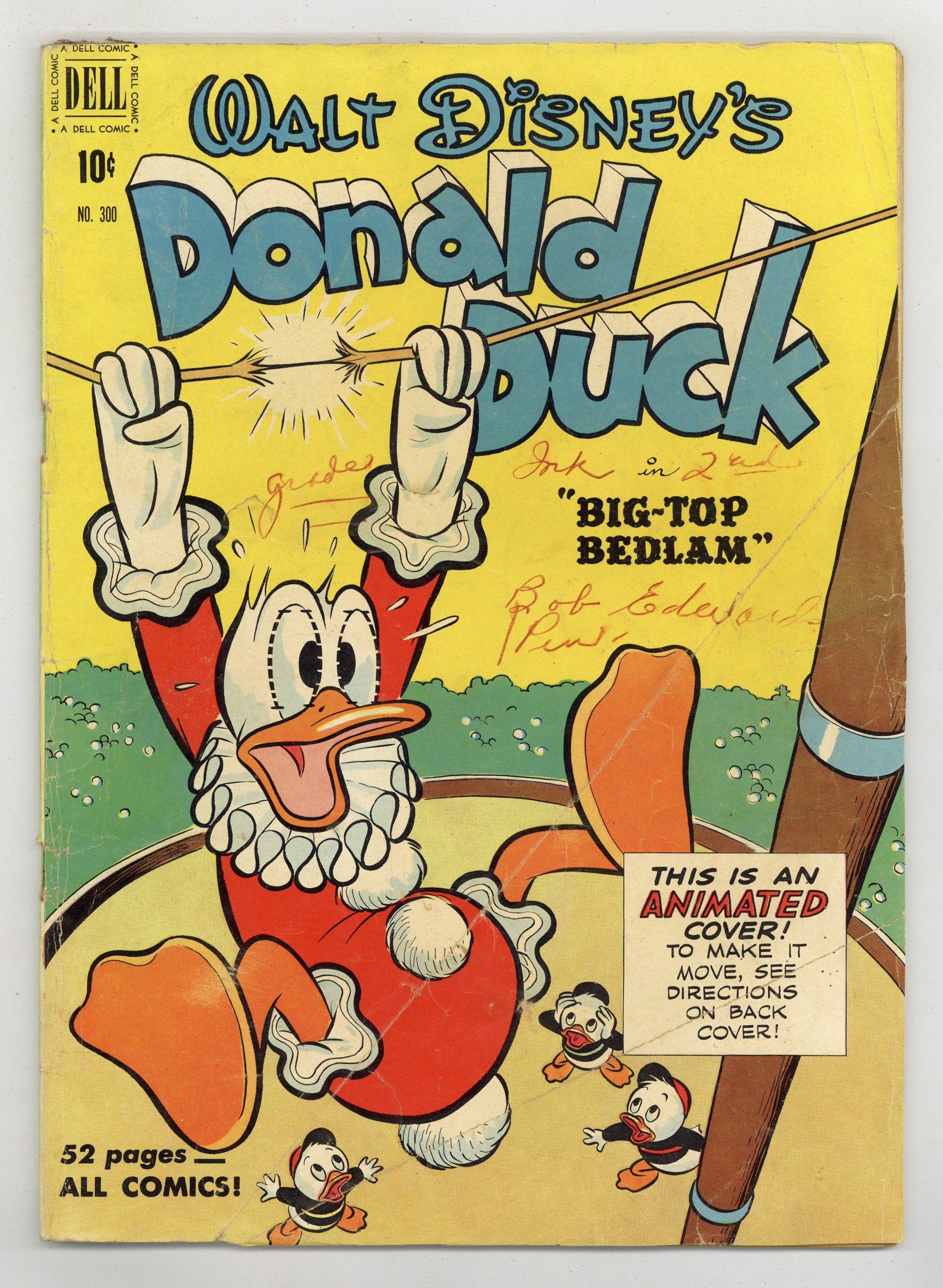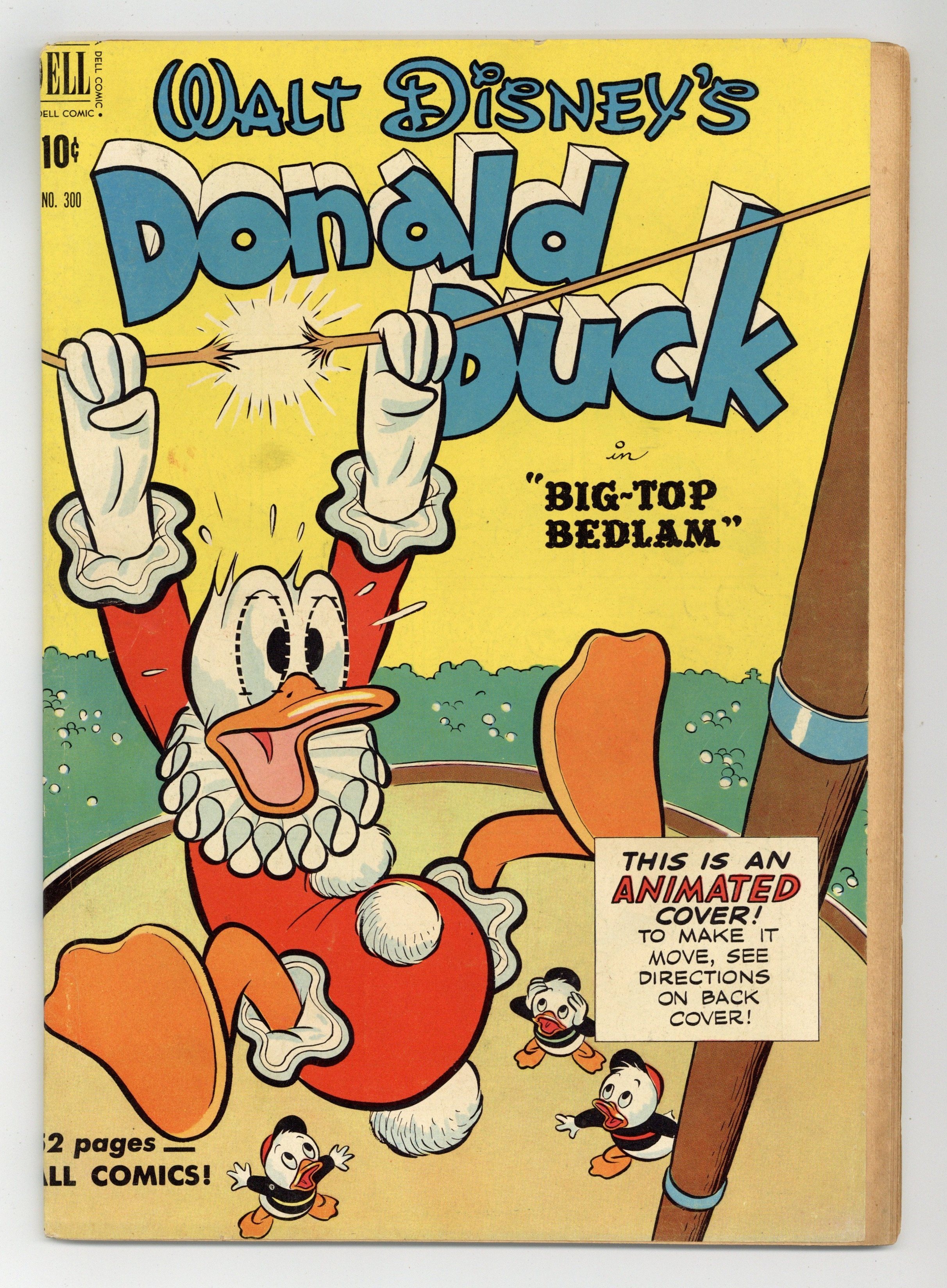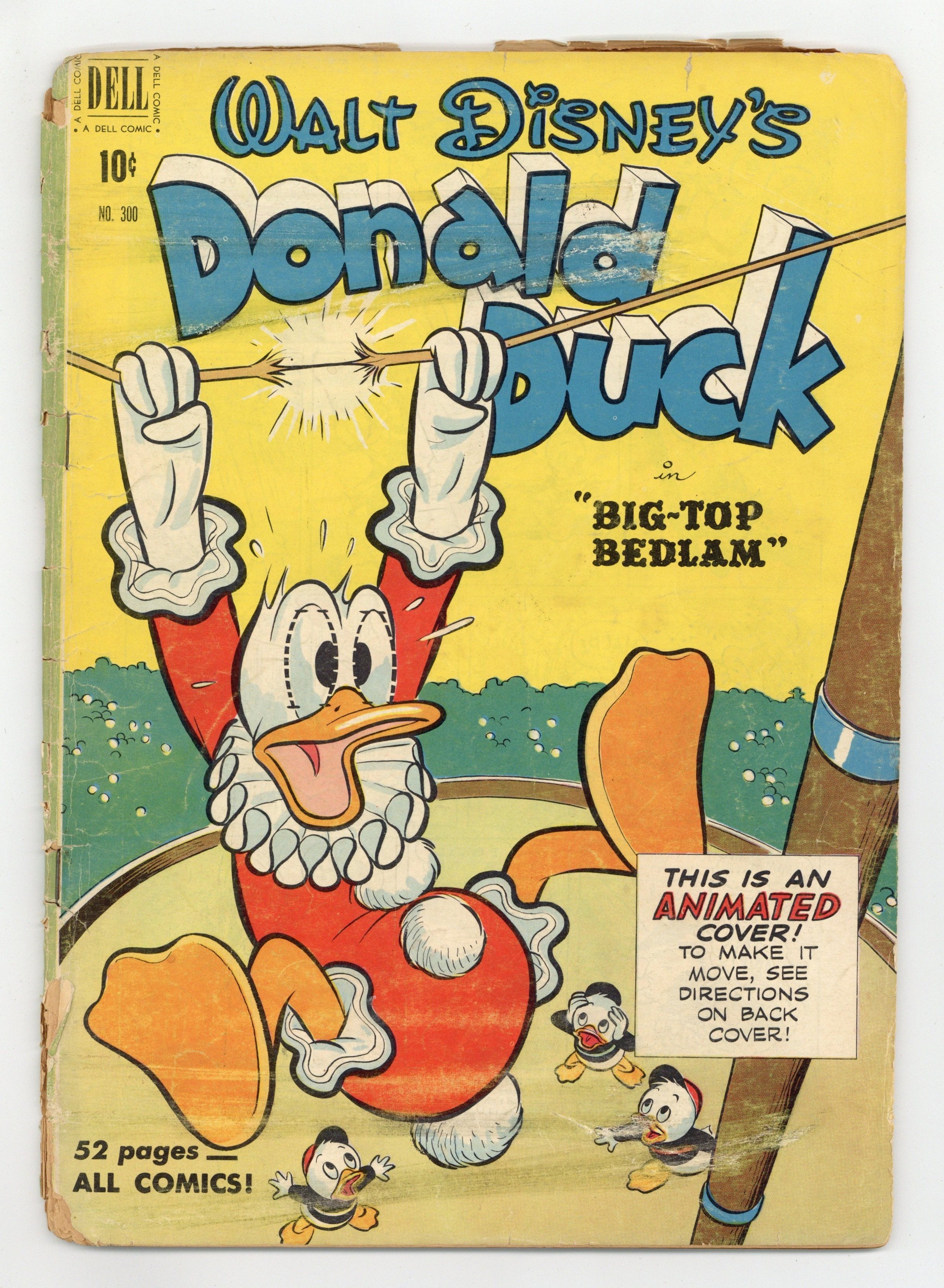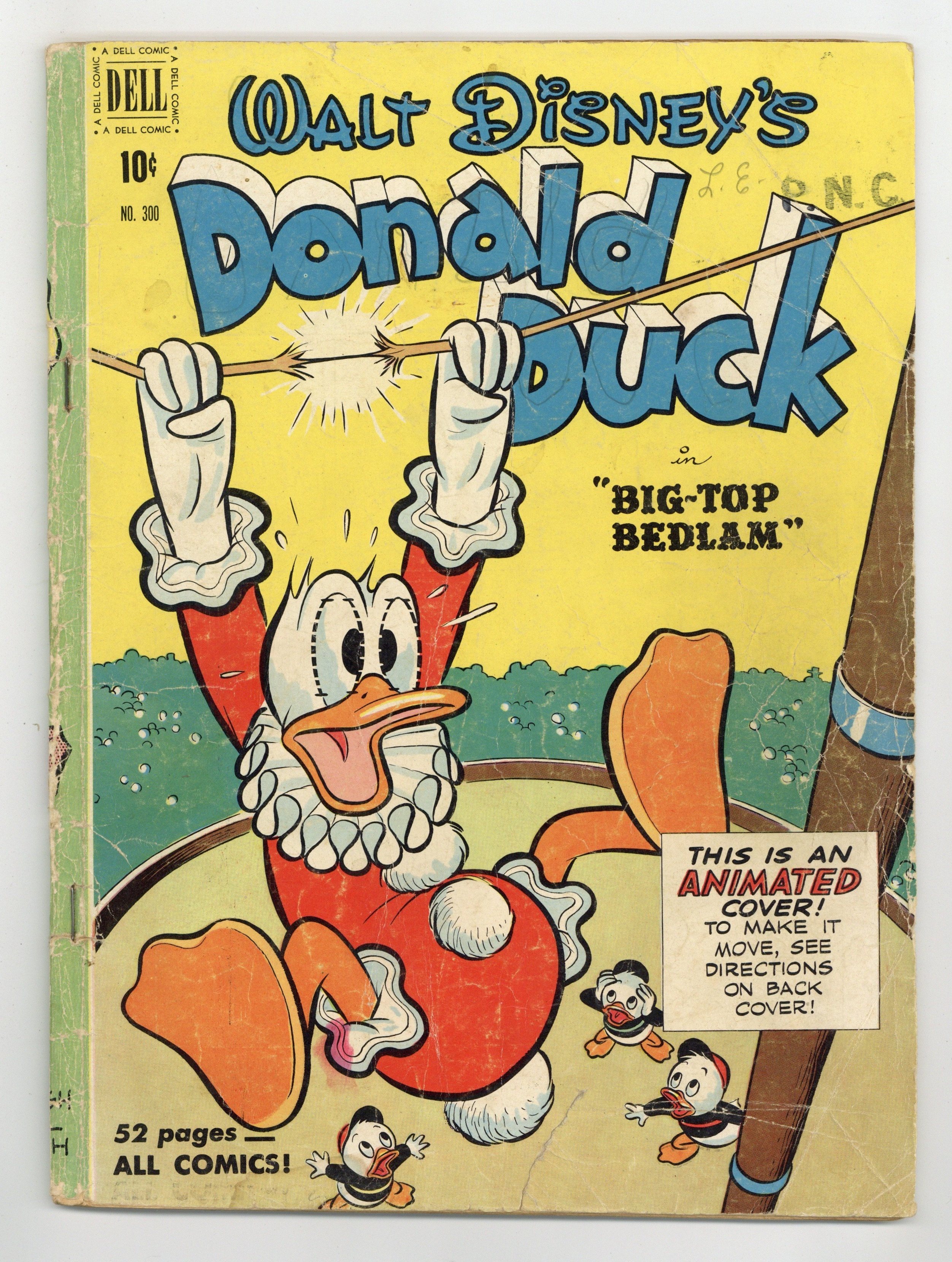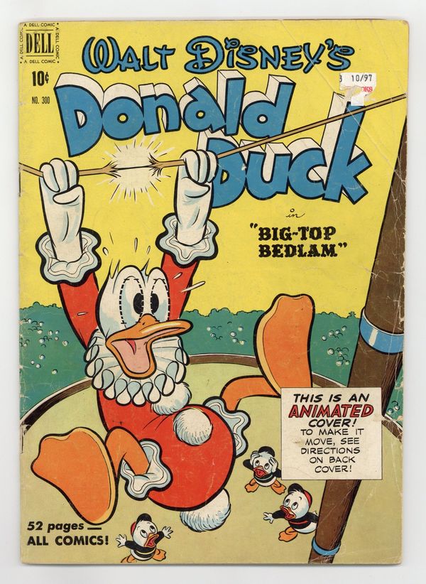 Cover art by Carl Buettner. Big-Top Bedlam, script and art by Carl Barks; Donald loses Daisy's heirloom brooch on the way to hock it for enough money to buy circus tickets for himself and the nephews. The Firebugs, pencils by Paul Murry. 52 pages, full color. Cover price $0.10.