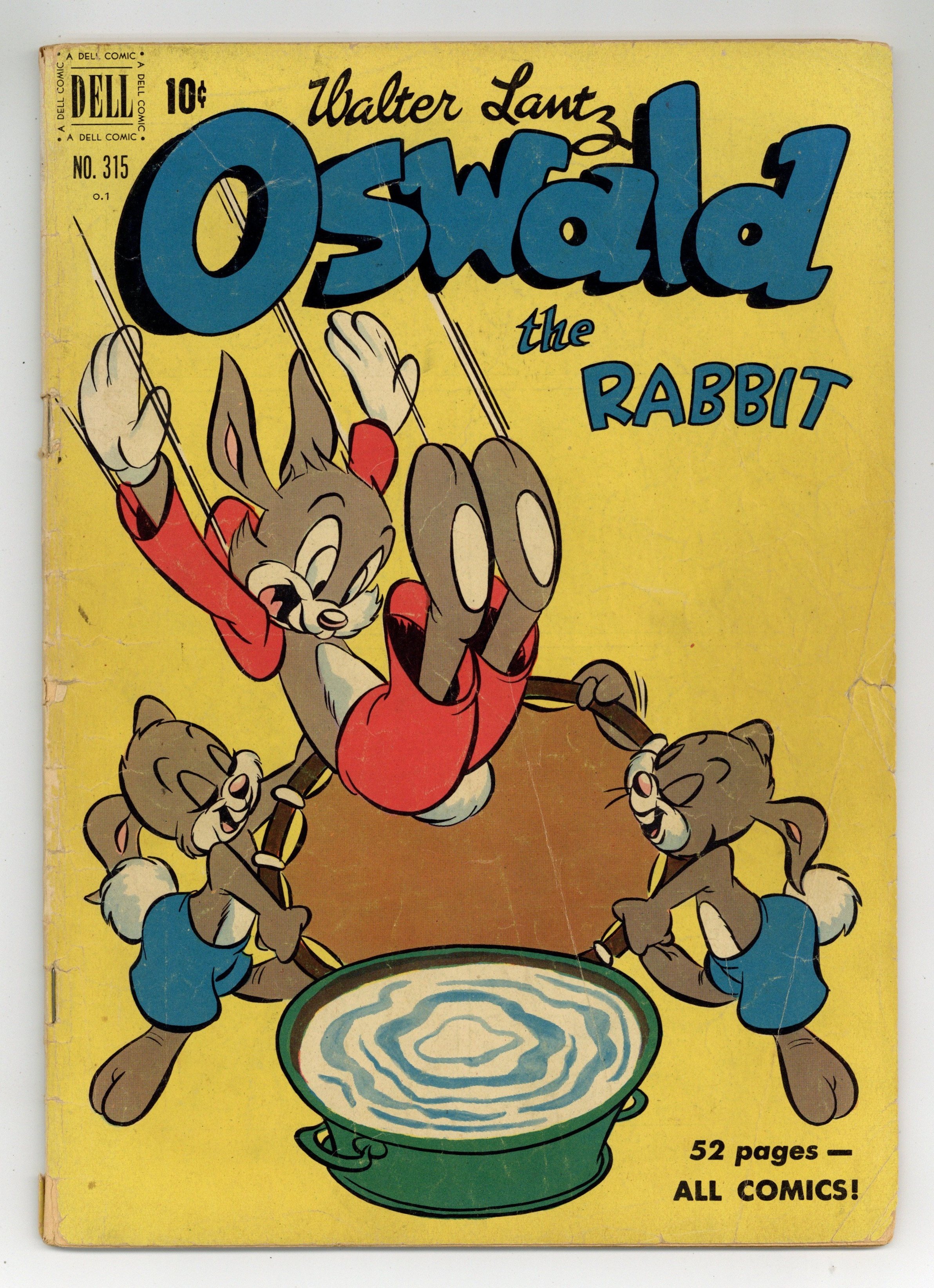 Stories and Art by unknown. Featuring three untitled tales, plus additional stories on the inside front and inside back covers, as well as the back cover. Starring Oswald the Rabbit, Floyd, Lloyd and Toby! 52 pages, full color. Cover price $0.10.
