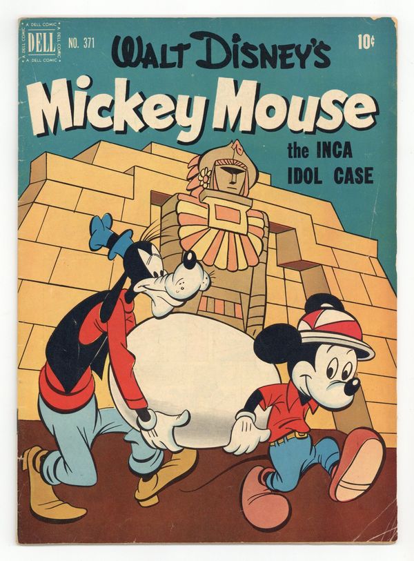 Cover art by Dan Gormley. Mickey Mouse and the Inca Idol Mystery; Two crooks use Mickey and Goofy to unknowingly help them smuggle the "Inca Idol" from the South American city of "Inca Blinka." Secret of the Pyramids; Mickey and Pluto are accidentally locked in a museum; Black Pete and El Cad break into the museum to steal the original plans of the pyramids from the mummy of King Tut-Tah-Tut. Car Phone back cover strip, art by Bill Weaver; Goofy has a pay phone installed in his car. 36 pages, full color. Cover price $0.10.