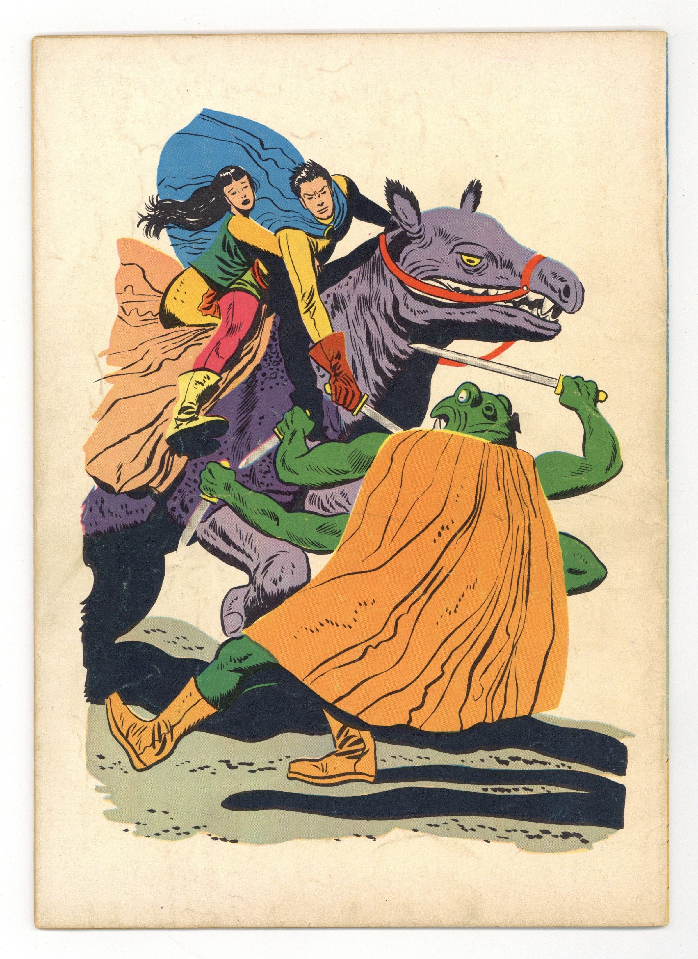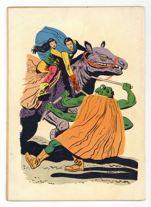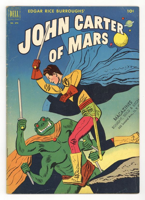 Cover art by Jesse Marsh. The Prisoner of the Tharks, script by Edgar Rice Burroughs (original story) and Paul S. Newman (adaptation), art by Jesse Marsh; Jon Carter is tranported to Mars, where he escapes from the Tharks and rescues Dejah Thoris from both the Tharks and Sab Than. Creatures of Mars filler page, art by Jesse Marsh. John Carter of Mars and Dejah Thoris back cover pinup by Jesse Marsh. 36 pages, full color. Cover price $0.10.