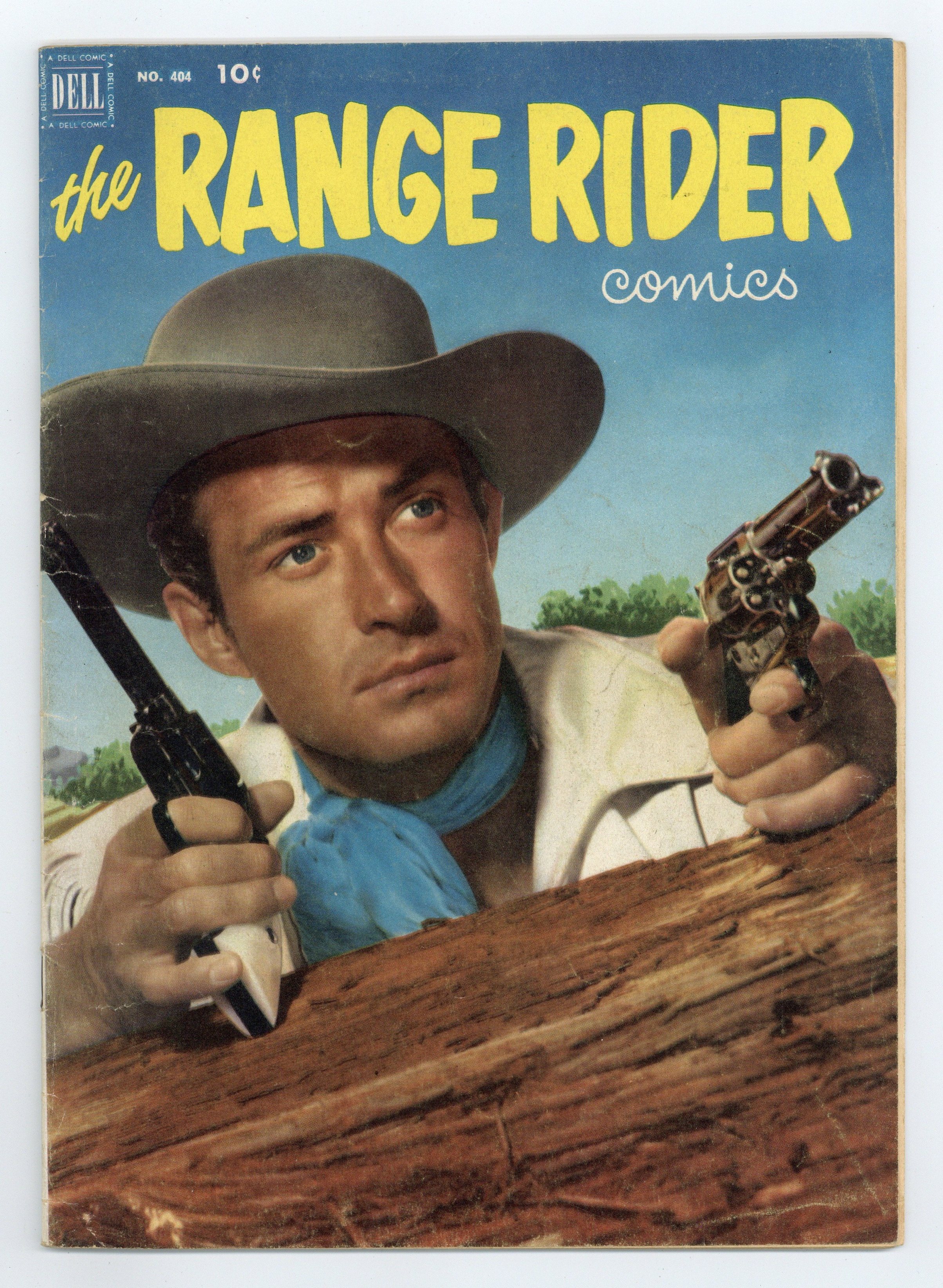 Indicia title is "THE RANGE RIDER, No. 404." Cover photo of Jock Mahoney as Range Rider. Facts about the Overland Stage Line, which ran from St. Louis to San Francisco from the 1850s to the 1870s, art by Till Goodan. Range Rider and the Monster of the Desert, art by Bob Schoenke; Dick West's uncle Jed Perdue leaves him tied to a tree in the mountains to die of exposure; With Dick's death, Perdue would inherit a valuable ranch. Range Rider and the Killer of Rio Hondo, art by Bob Schoenke; While out riding, Range Rider and Dick West come across a burning wagon; Range Rider rescues a man from the wagon, but he has been shot and dies soon after telling the pair to search for "El Asesino. 36 pages, full color. Cover price $0.10.