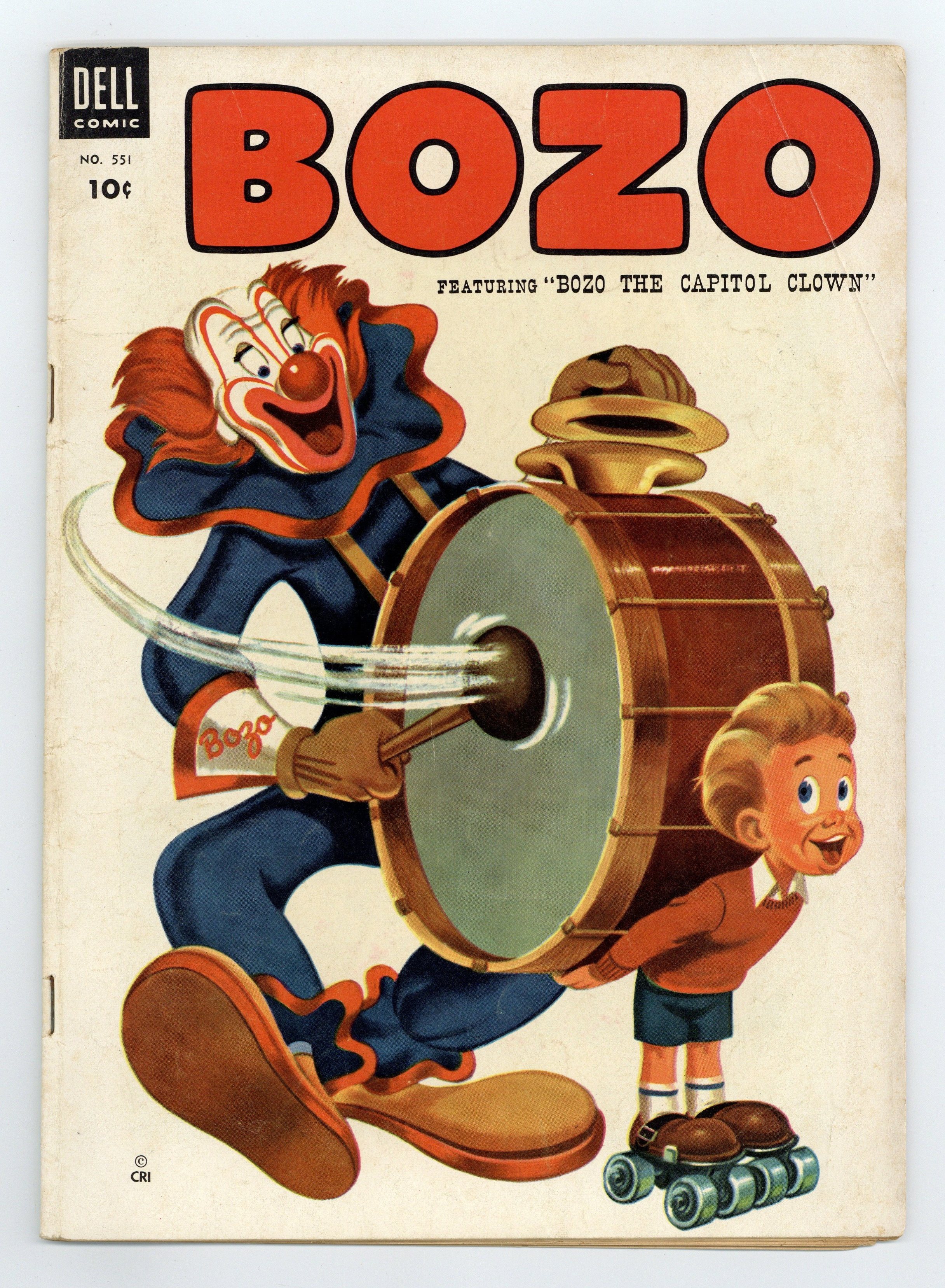 Indicia title is "BOZO, featuring Bozo the Capitol Clown, No. 551." Cover painting by Lee Hooper. Bozo's Day Off; Bozo has the day off and decides he wants to see a circus. Professor Calculas and the Voodoo Box; ozo takes a trip in a balloon to investigate strange objects which appear to be floating in the sky; He and Sparky get involved with a strange inventor who wants the pair to help him in his search for the "missing link." Bozo the Lion Tamer; The circus owner wants Bozo to do the lion-tamer act while their handler is away. 36 pages, full color. Cover price $0.10.