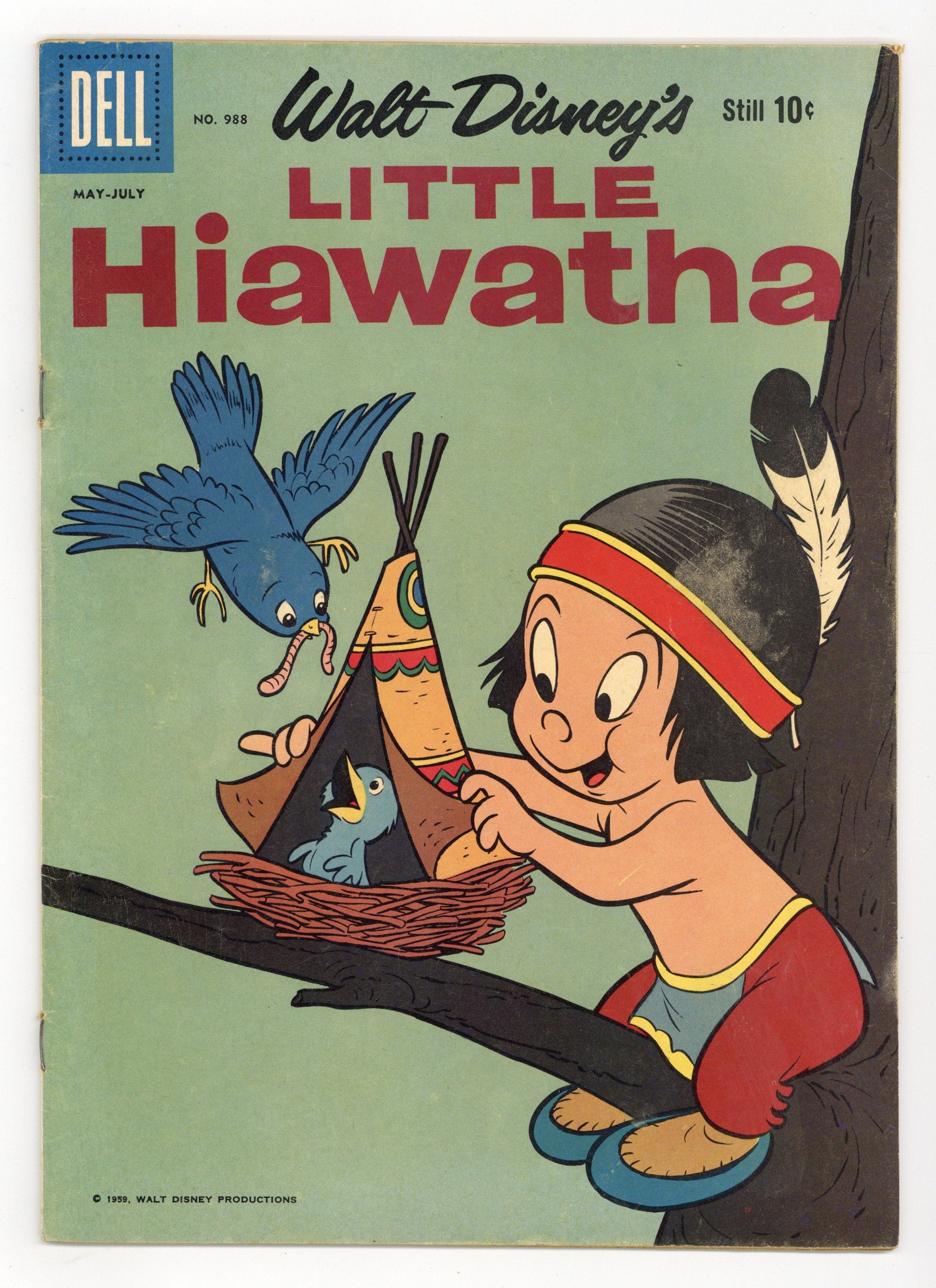 Walt Disney's Little Hiawatha. Cover by Harvey Eisenberg. Stories by unknown. Art by Harvey Eisenberg and Steve Steere. Featuring the tales "The Kite Caper," "Junior Trooper," "Headdress Hunter" and "Brave and Brainy," plus four untitled 1-page stories! Starring Little Hiawatha, Big Chief, Sunflower and Bambi! 36 pages, full color. Cover price $0.10.