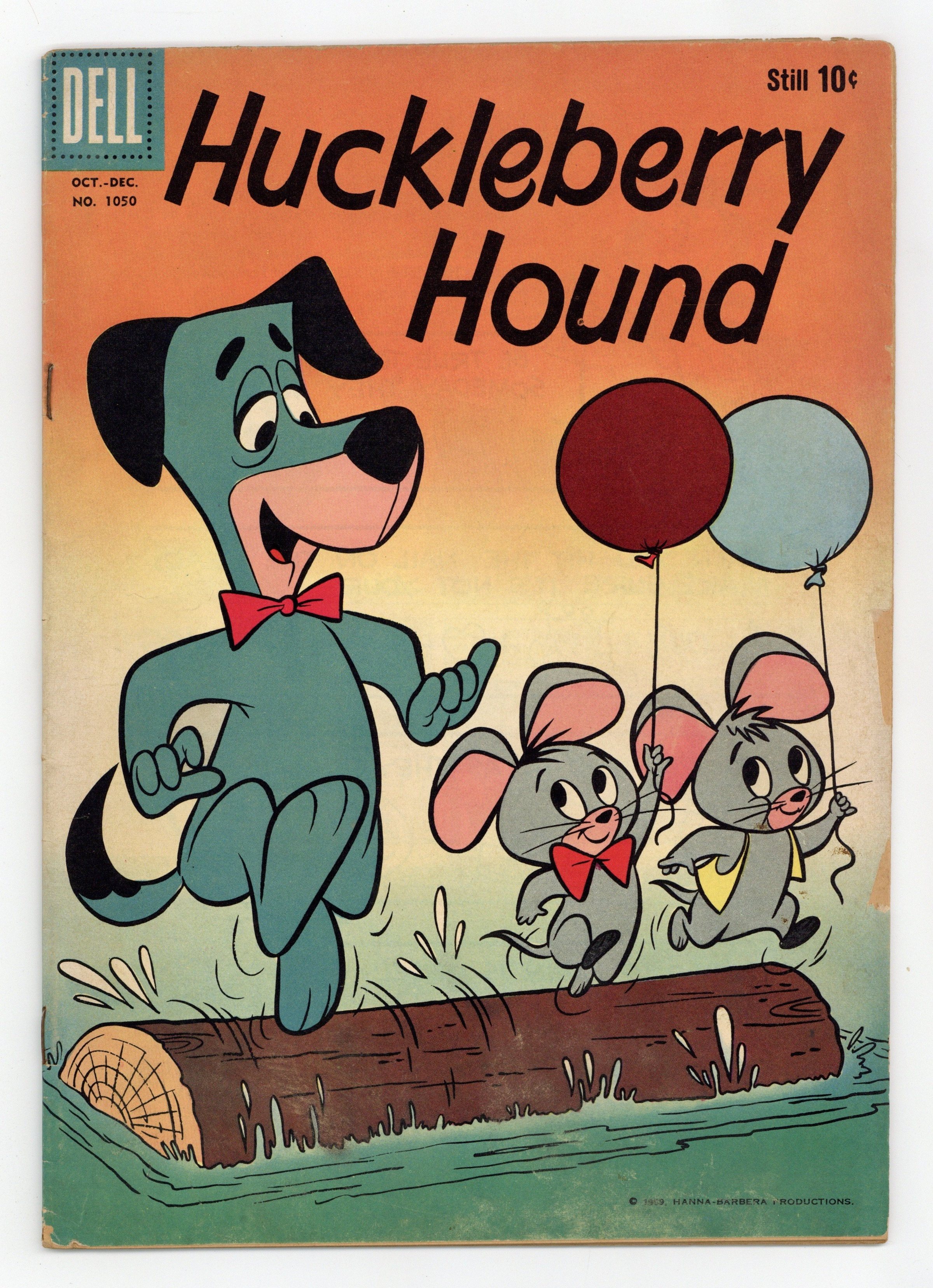 Indicia title is "HUCKLEBERRY HOUND, No. 1050." Cover art by Harvey Eisenberg. The Part Time Pirate; Huck takes a tour on a pirate ship, only to find himself shanghaied by Cap'n Didd into being the ship's only crew member. The Abominable Snowman; Mr. Jinks tricks Pixie and Dixie into signing a contract making him their manager; He takes the pair to a carnival where they are a hit despite their attempts to ruin the act. The Hat Hassle; The wind blows off Yogi's hat and it lands near a bully bear who claims it for himself. The Dirty Birdie; Huck starts a business giving birds baths. Back cover playing board and rules for a game called "Lucky 11." All art by Harvey Eisenberg. 36 pages, full color. Cover price $0.10.
